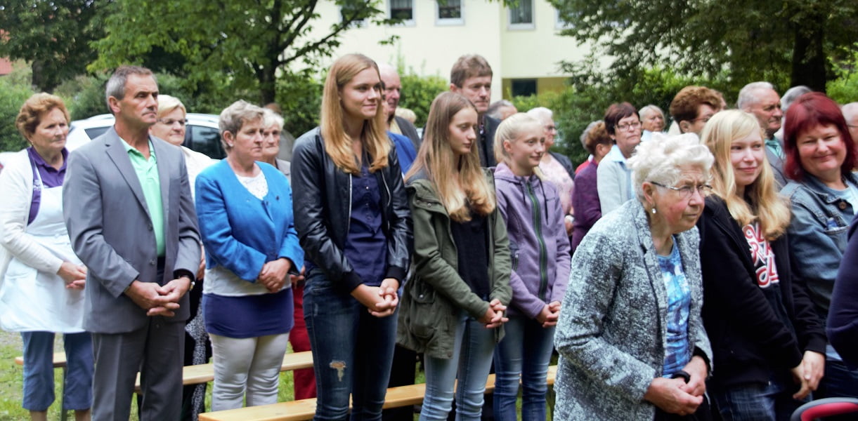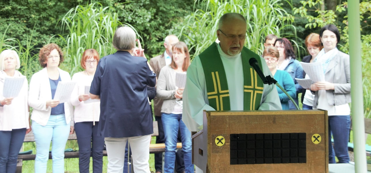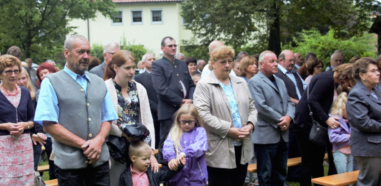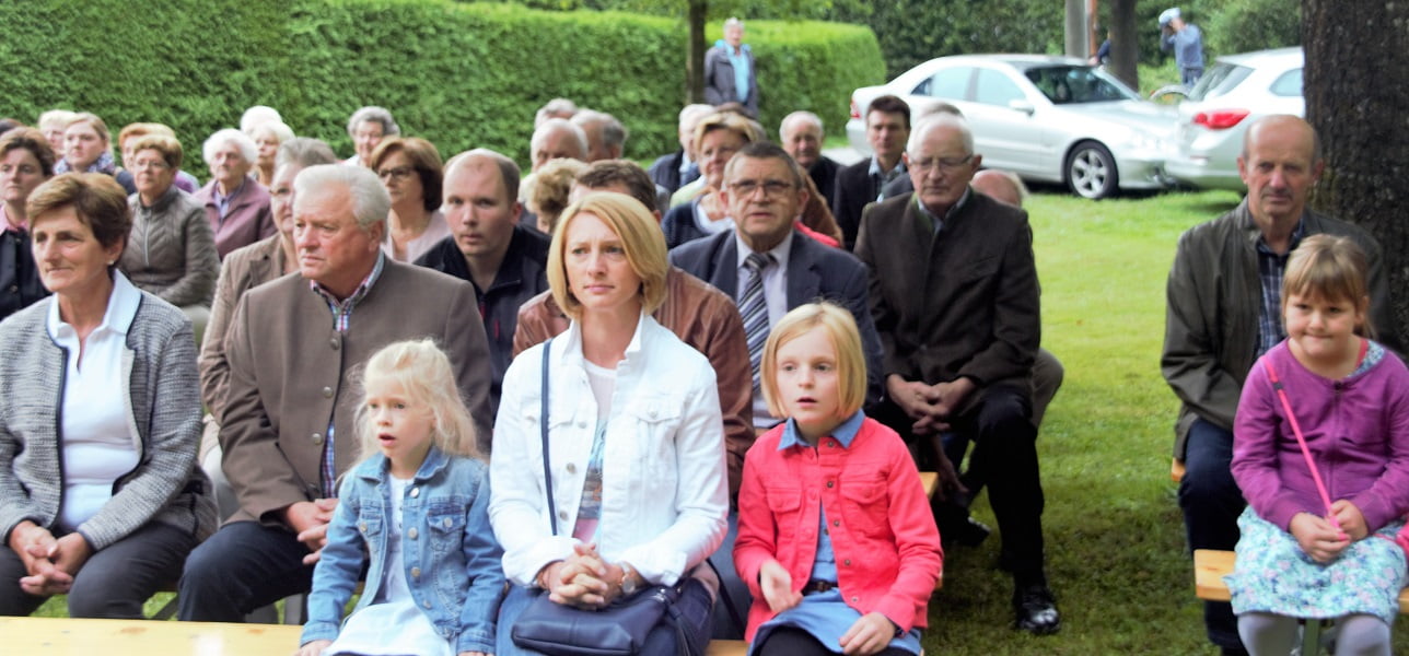 Die Pfarrgemeinde feierte heute den Gottesdienst im Rahmen des Grillfestes des Kleintierzuchtvereines unter freiem Himmel.