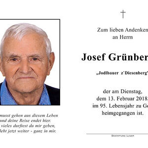 Josef Grünberger hatte ein zufriedenes, arbeitsreiches und langes Leben von 94 Jahren.