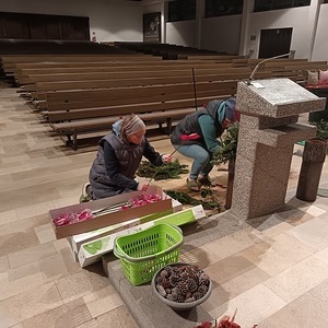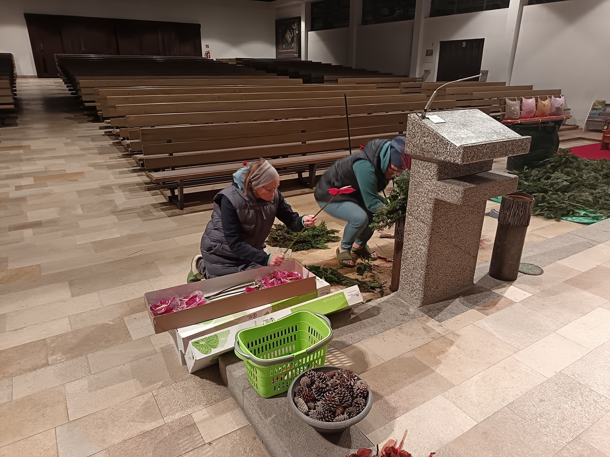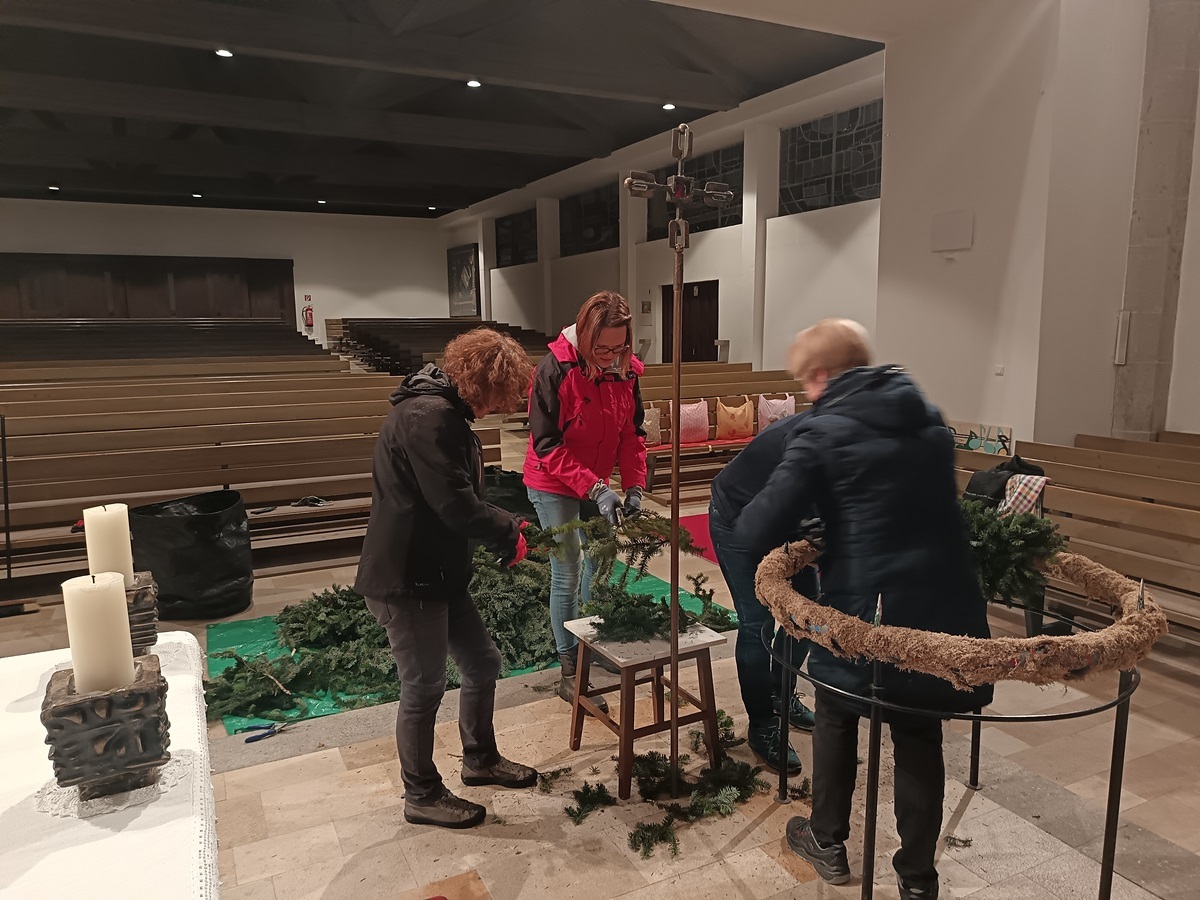 Danke an Marianne Pröll mit ihren "Reisig-Zugebern" fürs Binden des Adventkranzes in der Kirche und das Tannenreisig von Erich Pröll.