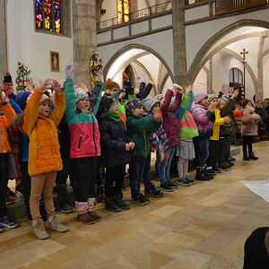 den Ministranten, den Kindern aus den beiden Kindergärten von Rainbach und der Pfarrbevölkerung.