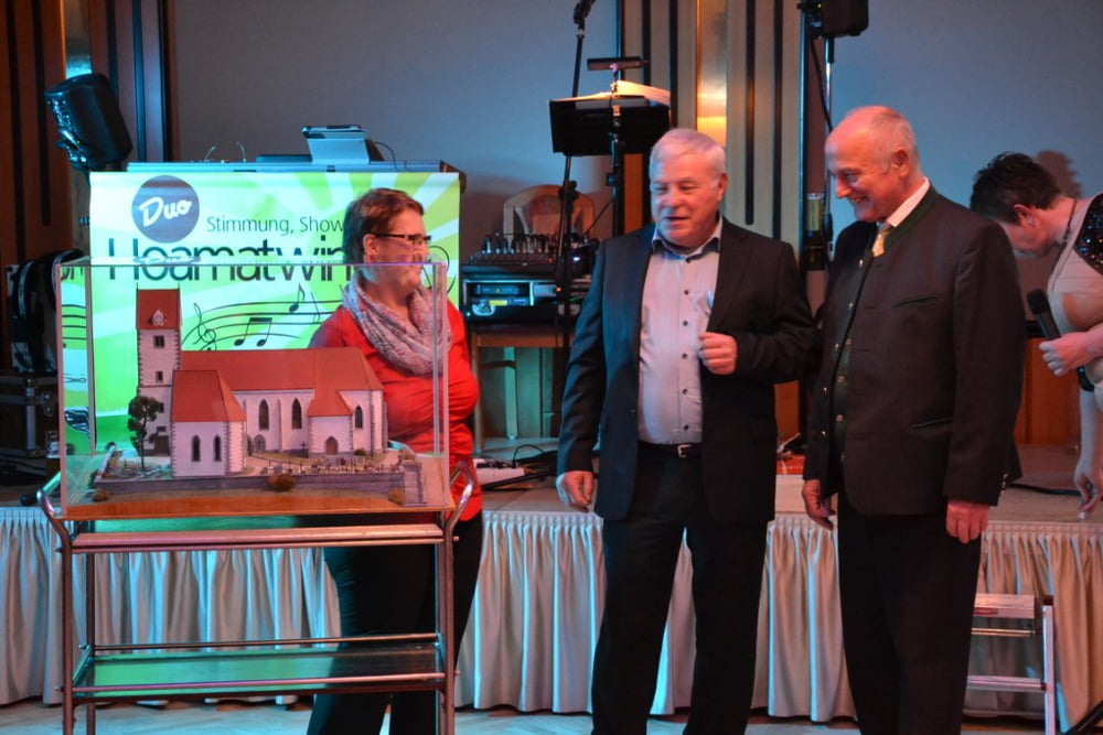 Von Ulrich Kralik erhielt unser Pfarrer ein detailgetreues Modell der Pfarrkirche überreicht.
