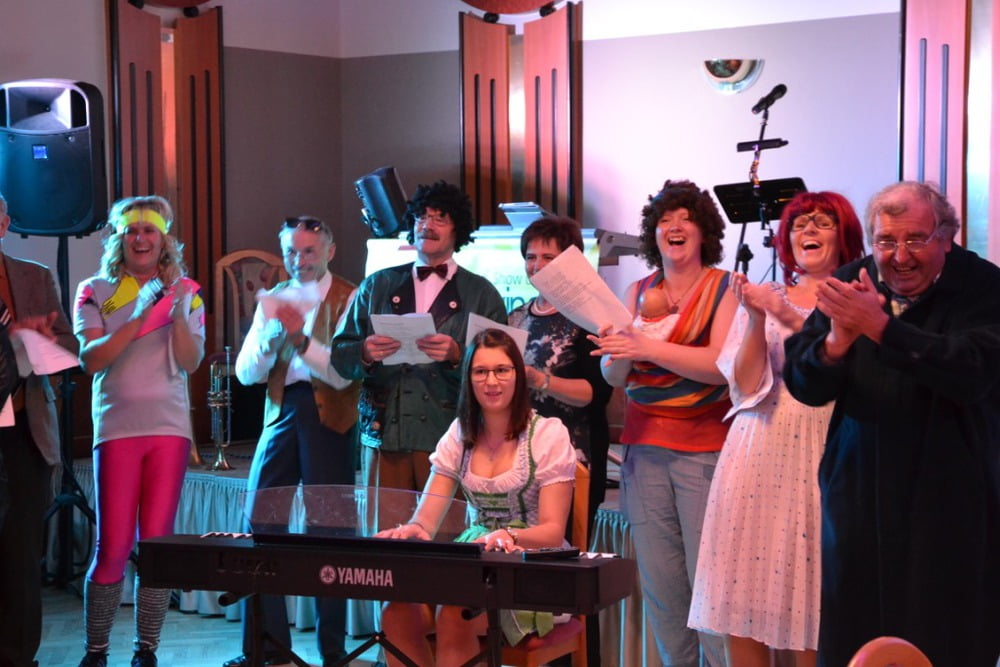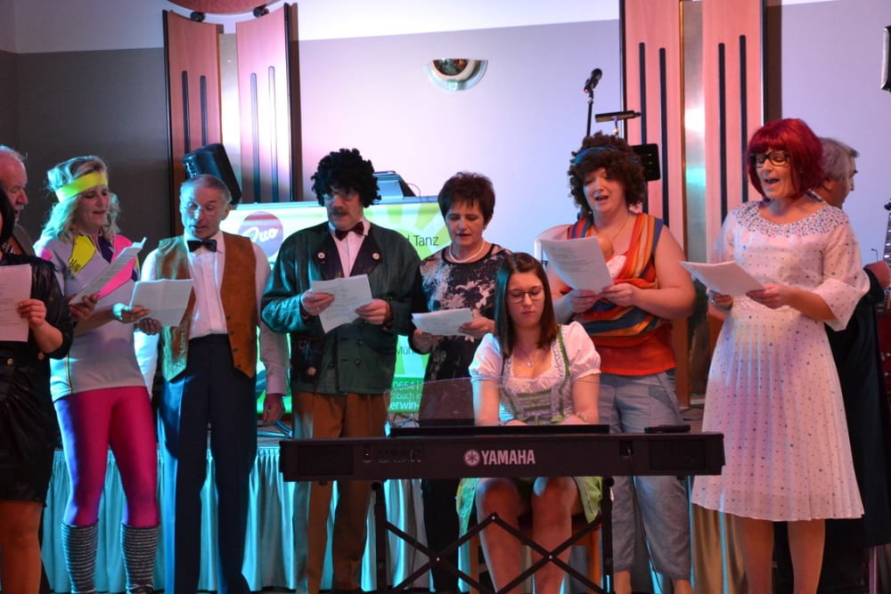 Und unter dem Motto "Mode vor 30 Jahren" stand auch die vom Pfarrgemeinderat gestaltete Mitternachtseinlage. Die Lieder, mit der Ereignisse der vergangen 30 Jahre aufs Korn genommen wurden, ernteten viele Lacher.