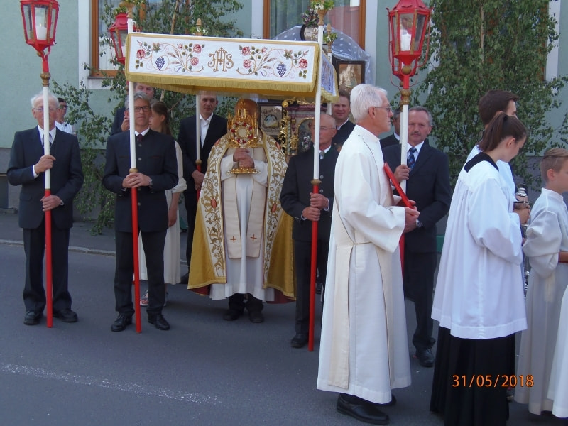 Fronleichnam kommt von "vron" für "Herr" und "lichnam" für "lebendiger Leib" und bedeutet soviel wie "Leib des Herrn".