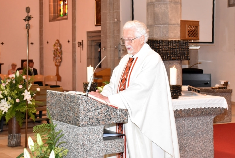Pfarrer Anton Renauer feierte den Gottesdienst. Er war von 1963 - 69 Kaplan in Rainbach und traute einige der Ehepaare die heute die Goldene Hochzeit feiern.