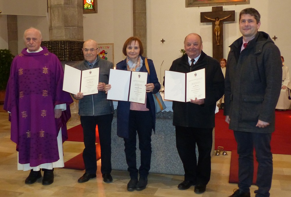 vlnr. Pfarrer Anton Stellnberger, Alois Elmecker, Notburga Leitner, Josef Wagner, Pfarrgemeinderatsobmann Wolfgang Gratzl