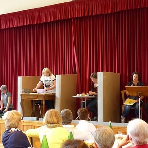 Zwischen den Präsentationen blieb auch Zeit zum Plaudern und Zeit zum Genießen bei Kaffee und Mehlspeise. Mit einer Überraschungseinlage auf der Bühne konnte das Team auch eine Zeit zum Schmunzeln und des Lachens in den vollen Pfarrsaal zaubern.