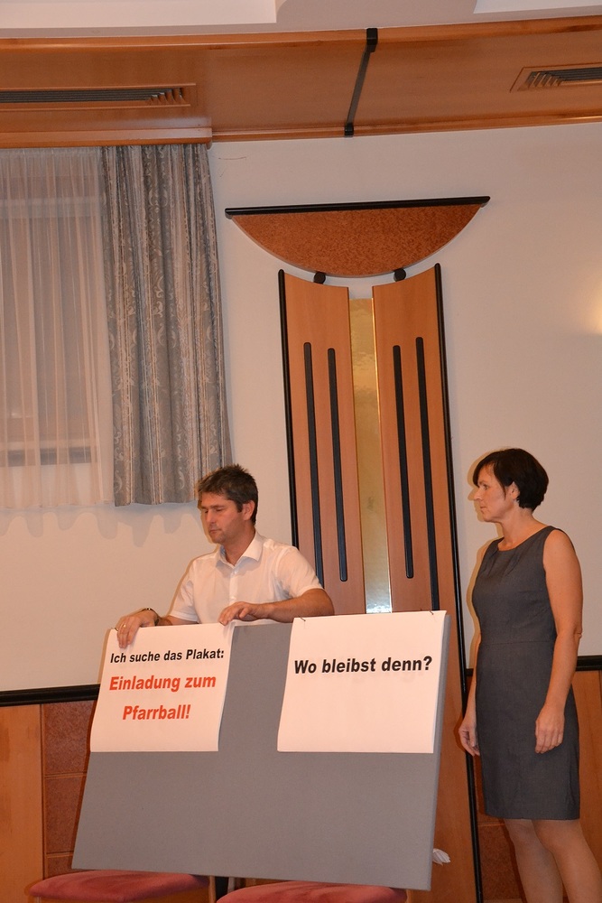 Um ca. 23:30 folgte dann eine "sprachlose" Mitternachtseinlage, wieder gestaltet vom Pfarrgemeinderat. Zwischendurch wurden die Ballgäste, von der Kfb, im Keller des Gasthauses Blumauer mit Kaffee und Kuchen verwöhnt.