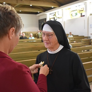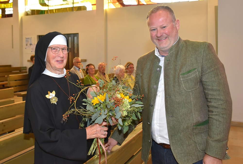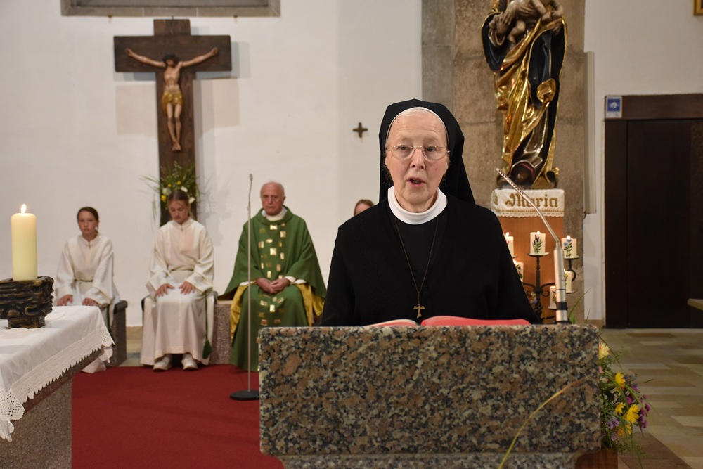 Der Jubliäumsgottesdienst wurde vom Rainbacher Kirchenchor feierlich musikalisch umrahmt. Im Namen der kfb steckte Gerlinde Kohlberger Sr. Herma ein Jubliläumssträußerl an. Pfarrgemeinde-