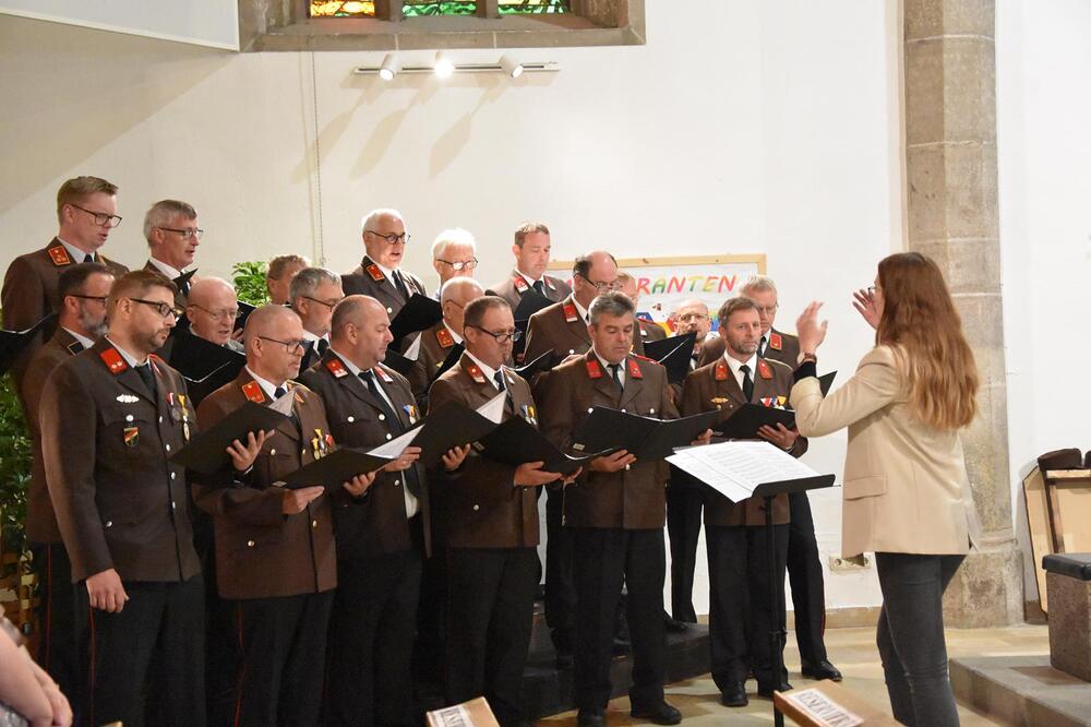 Magdalena Wirtl hat mit dem Chor aus 20 Feuerwehrmännern einige bekannte und auch 3 neue Lieder eingelernt. Begleitet wurd der Chor von Josef Jahn am Klavier.