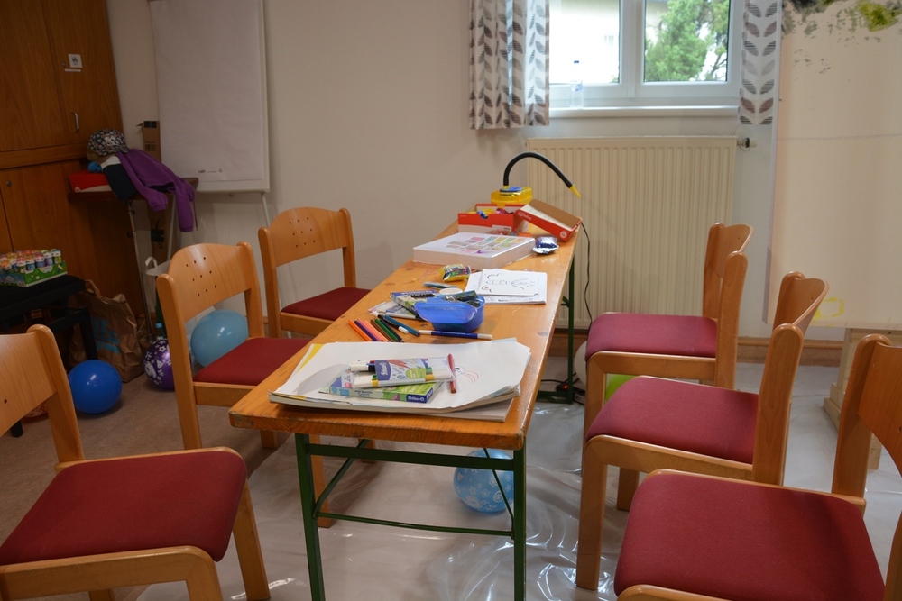 Die Kinderbetreuung war diesmal wetterbedingt im kleinen Saal im Pfarrheim.