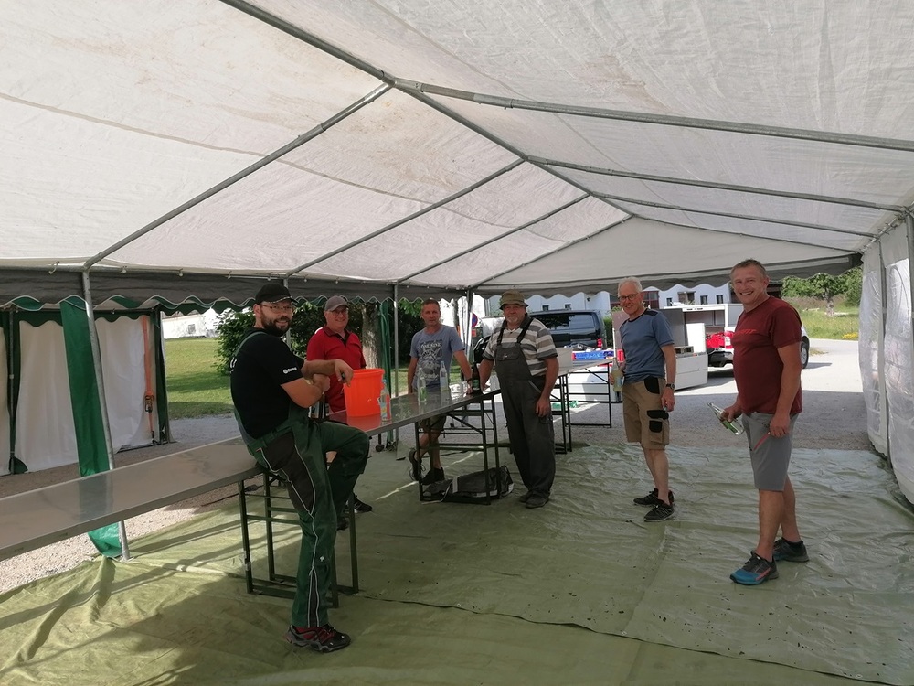 Der liebe Gott hatte es gut gemeint und hat die Zelte am Samstag vom Unwetter verschont, die Regenpausen waren über Mittag beim Pfarrfest genau richtig.