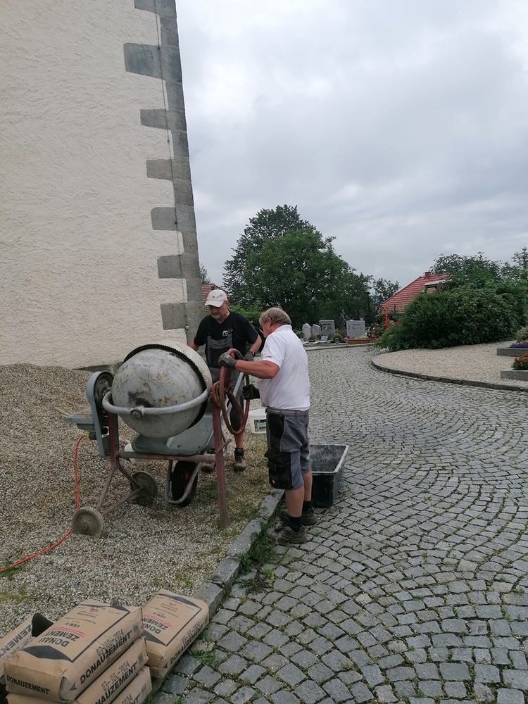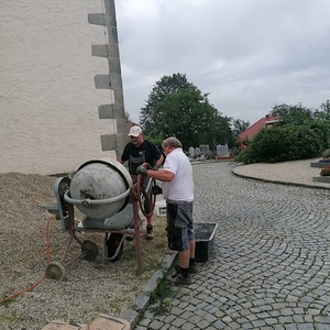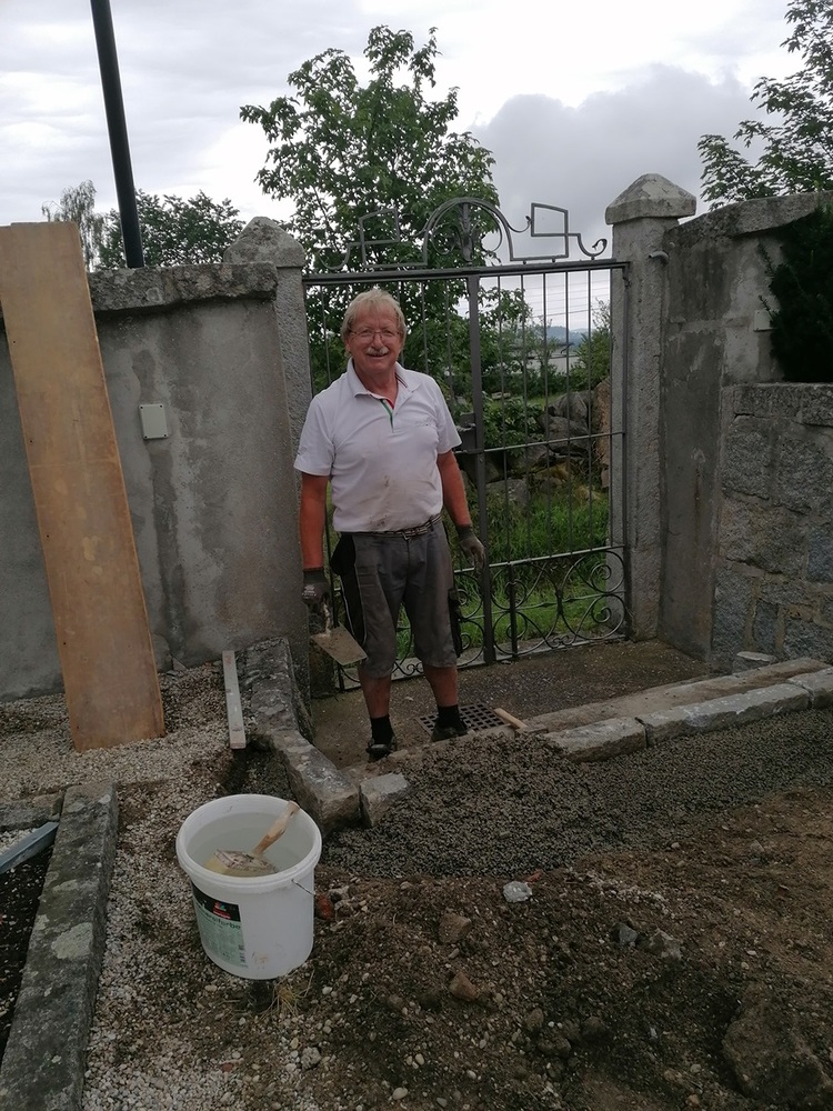 Um mehr Platz für Urnengräber zu schaffen, wurde das Pflaster beim stillgelegten Westeingang (alter Eingang) entfernt.