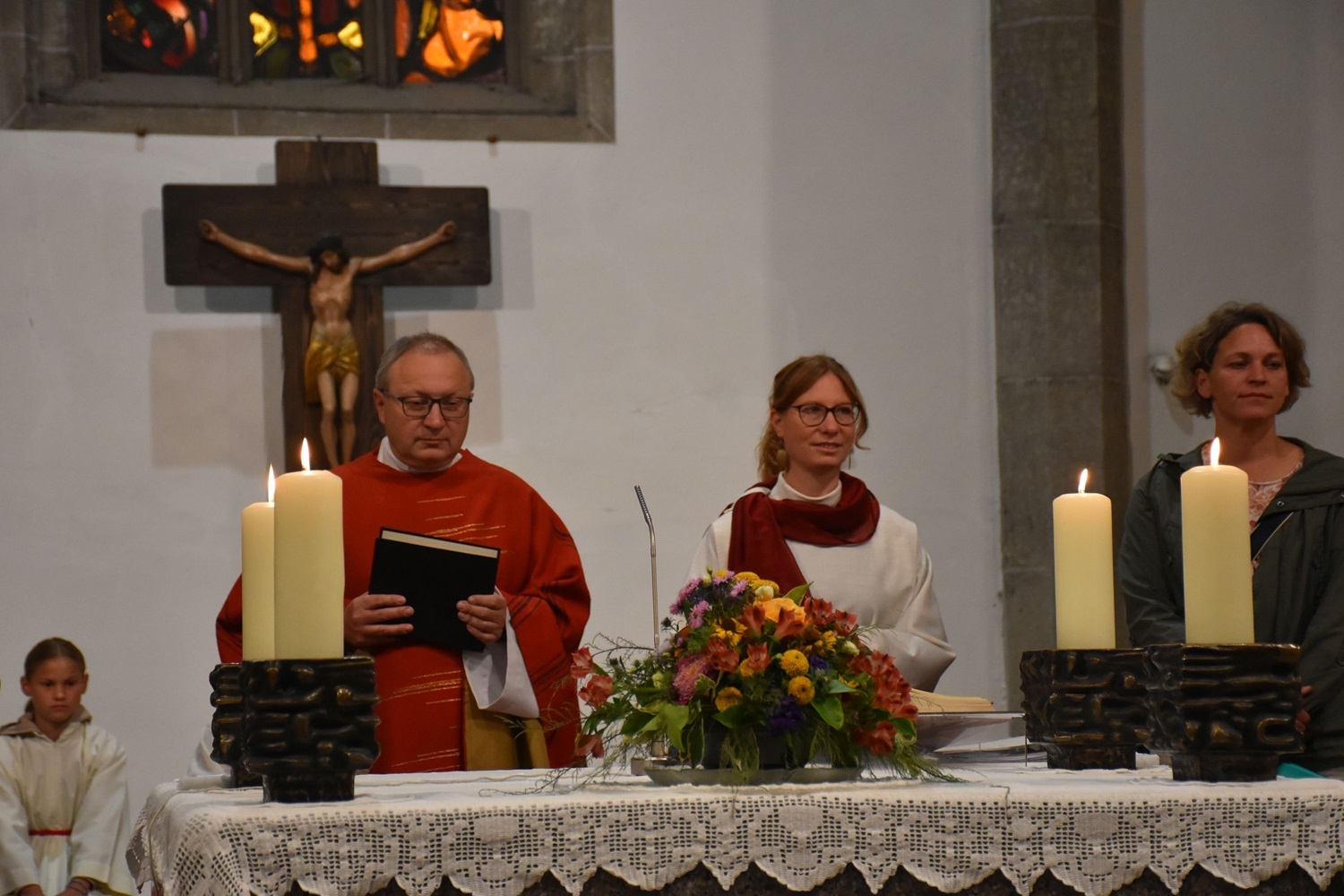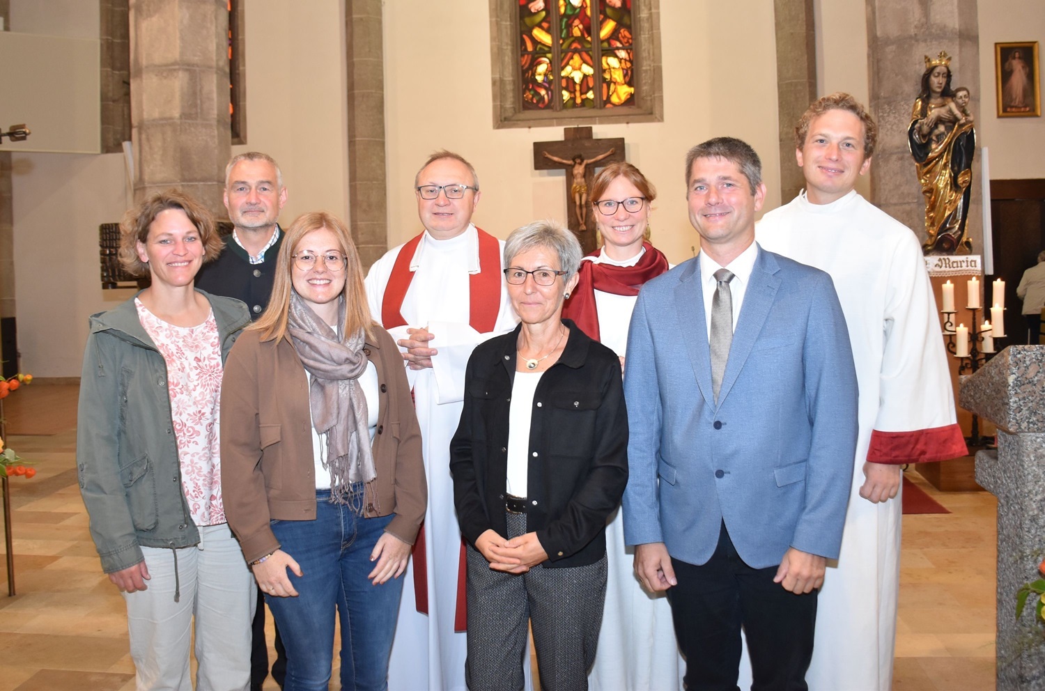 Entsprechend 1 Kor „Seid wachsam, steht fest im Glauben, seid mutig, seid stark!“ übernahmen am 14.9.2025 Michaela Birngruber, Erich Bayer, Wolfgang Gratzl, Sandra Ottensamer und Erika Wagner gemeinsam als Seelsorgeteam Verantwortung für die Pfarrgemeinde Rainbach. Im Auftrag des Bischofs wurden sie im Rahmen des feierlichen Sonntagsgottesdienstes von Pastoralvorstand Wolfgang Roth in ihre neue Funktion gesendet. Ihr Vielfältigkeit und ihre Erfahrung stellten sie bereits bei der Gestaltung des Gottesdienstes unter Beweis. Unterstützung in ihrer Aufgabe erhalten sie durch die Seelsorgerin Christine Schulz (hauptamtliche Ansprechperson) und durch Priester Raphael Golianek (priesterliche Dienste).