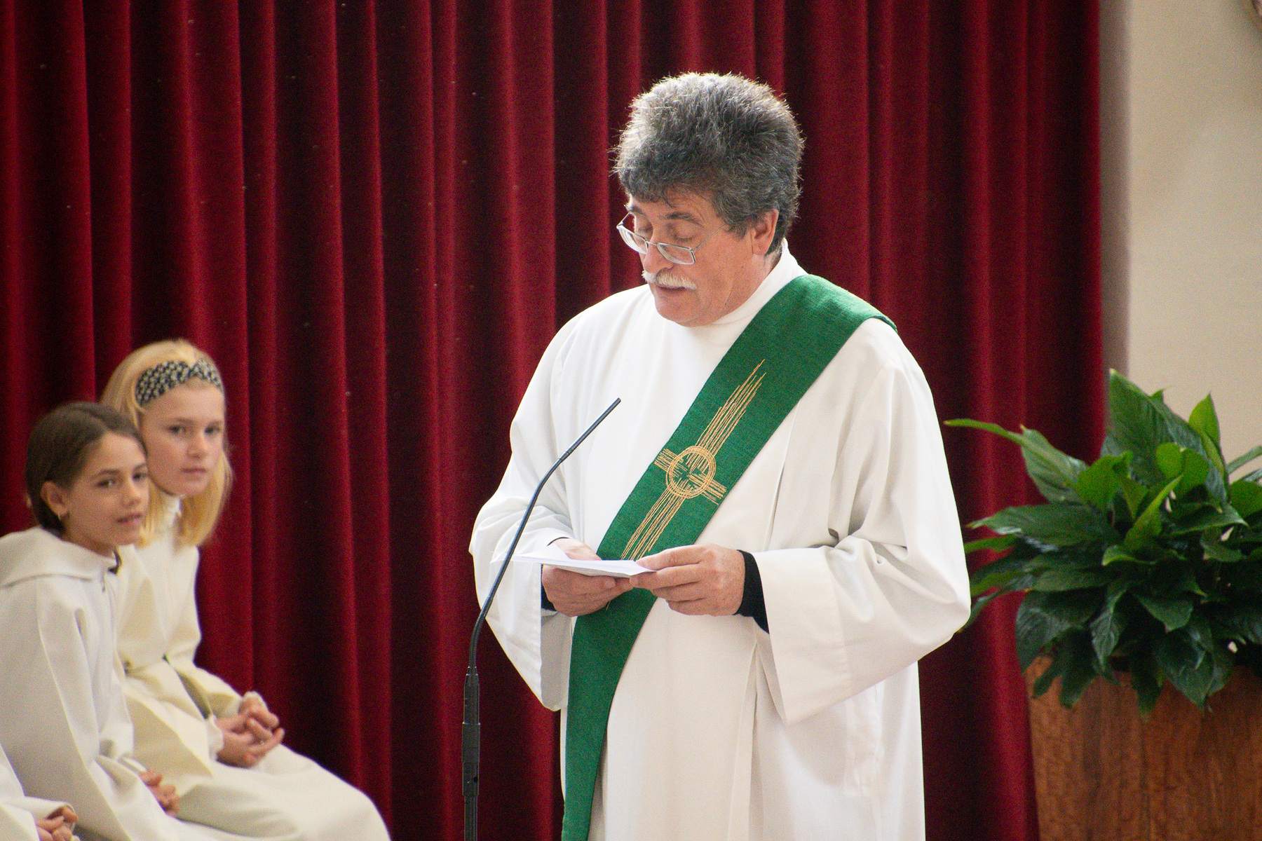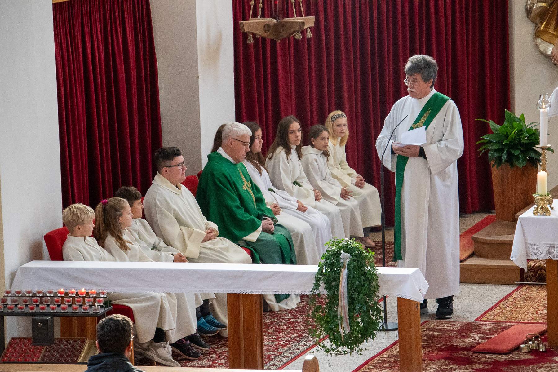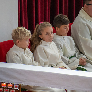 Nach der Erstkommunion werden von unserem Diakon die neuen Ministrant:innen für den Dienst in der Kirche angelernt.