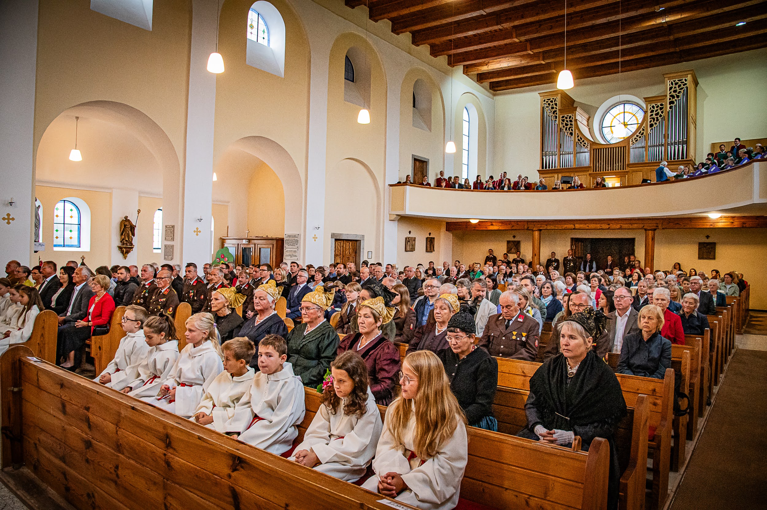 Nicht nur sein Weihekollege Herr Gottfried und Abt Lukas waren gekommen, auch eine sehr große Gemeinschaft unserer Pfarre hat das Fest mitgefeiert: Musikkapelle, Feuerwehr und die Kopftuch- und Goldhaubengruppe Rannariedl waren ausgerückt, eine große Ministrantenschar, die pfarrlichen Mitarbeiter mit dem Pfarrgemeinderat und dem Kirchenchor.