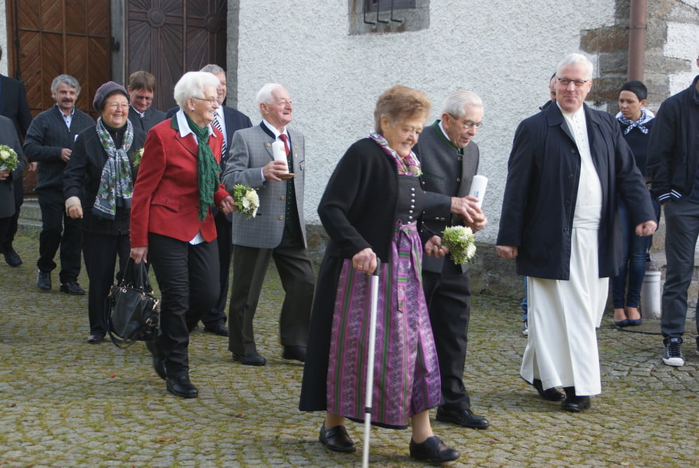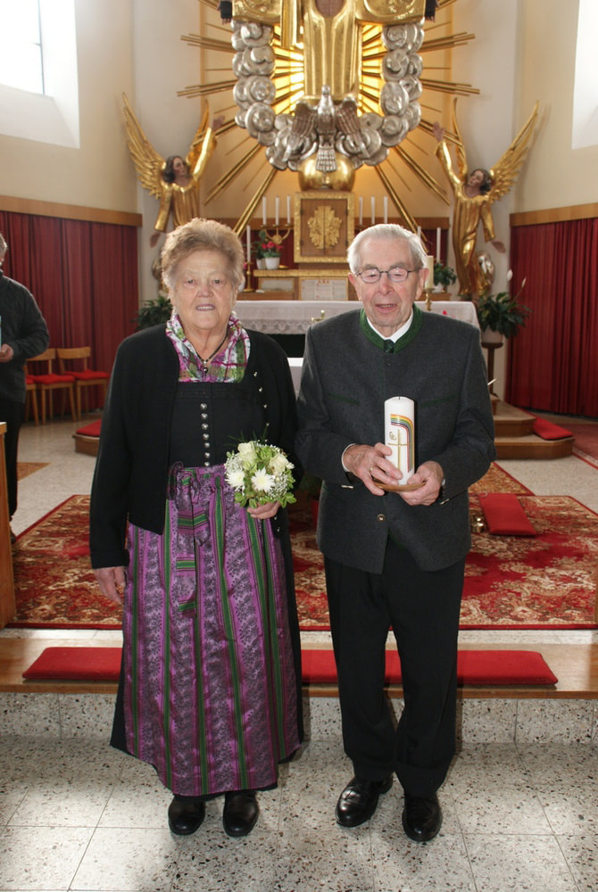 Zwei diamantene Paare: Anna und Leopold Weiß, Hildegard und Josef Fesel, ein goldenes Paar: Gertrude und Erwin Kudla, und 3 silberne Paare: Gerti und Günter Friedl, Theresia und Richard Huber, Heidi und Franz Schlagitweit, haben mitgefeiert. Das Fest wurde von der Pfarre, vom Kirchenchor, der Kfb und der Goldhaubengruppe bestens vorbereitet und gestaltet. Am Ende gab es nicht nur ein herzhaftes Frühstück, sondern auch Sonnenschein