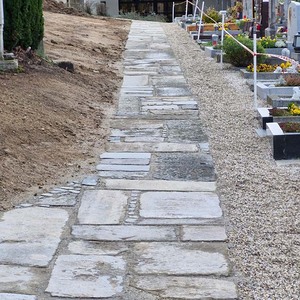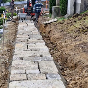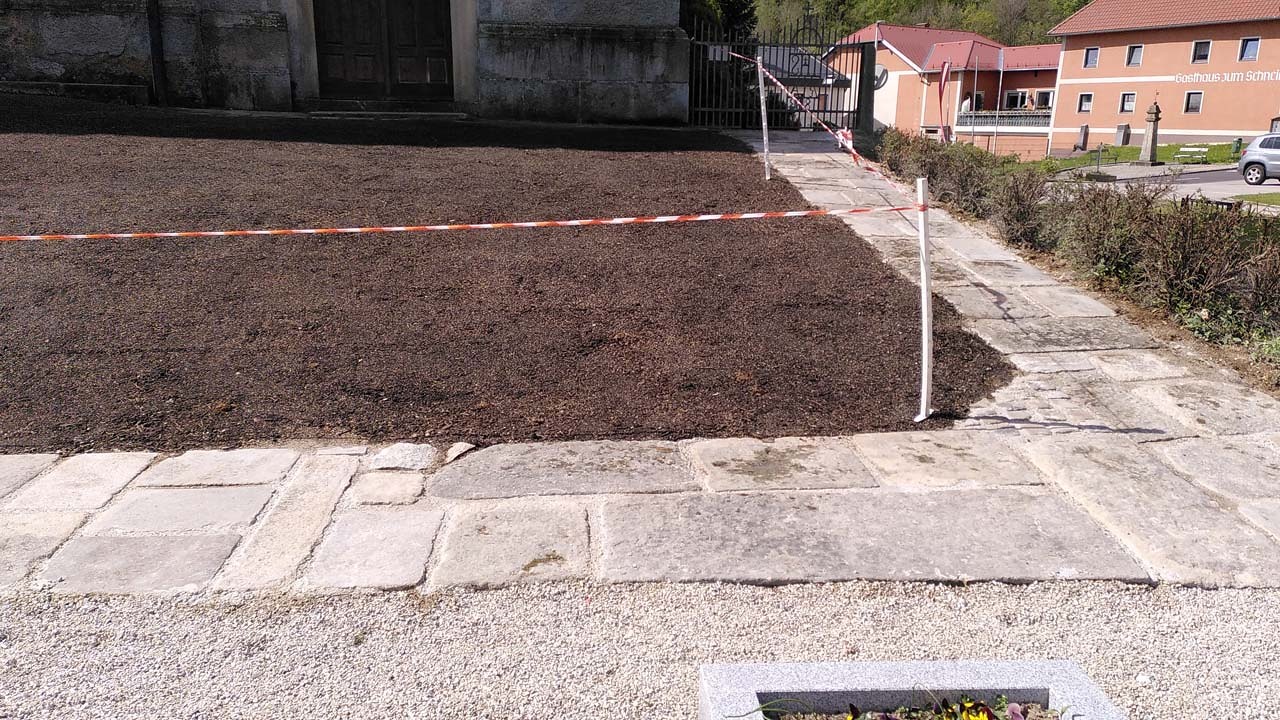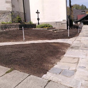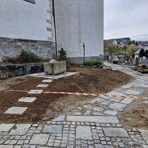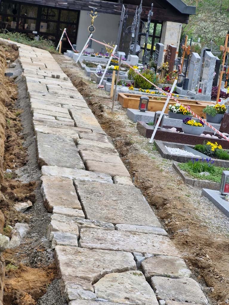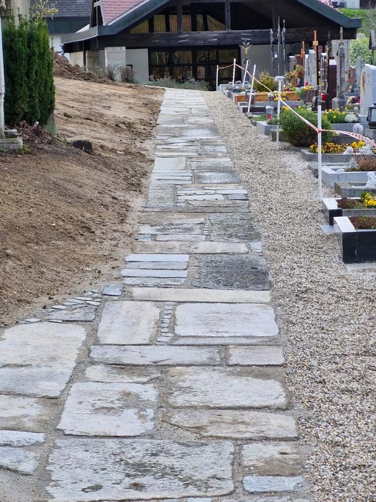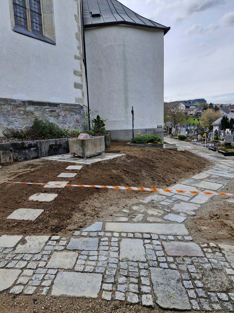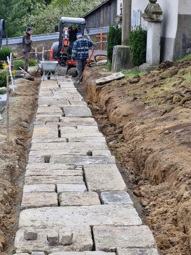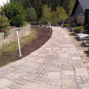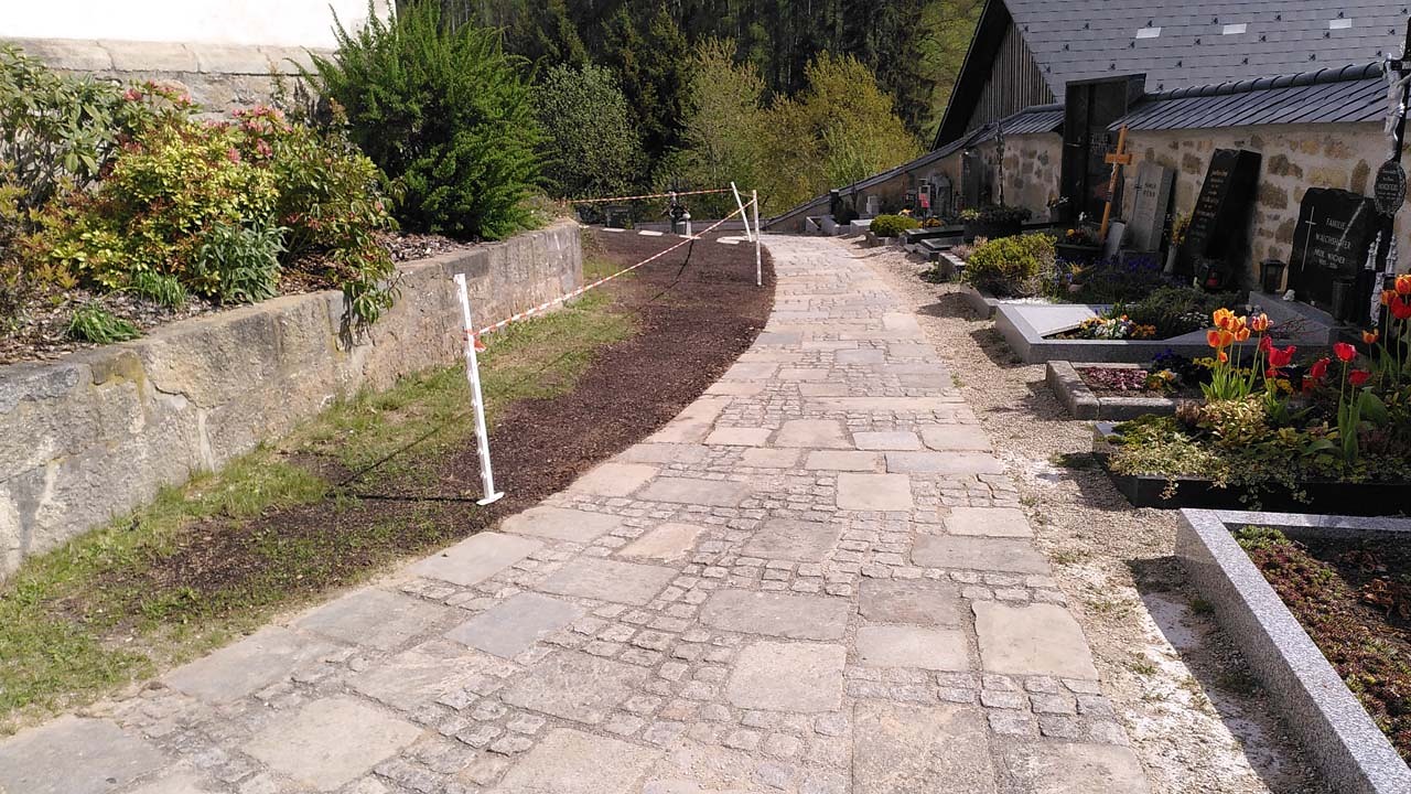 Der Steinplattenweg entlang der nördlichen Seite der Kirche ist fertig saniert.