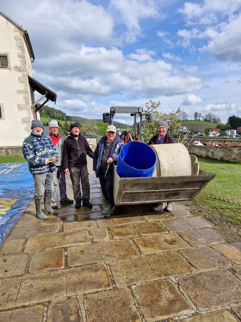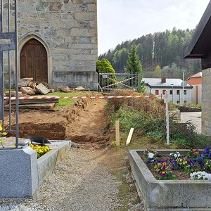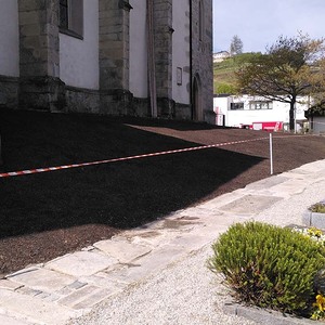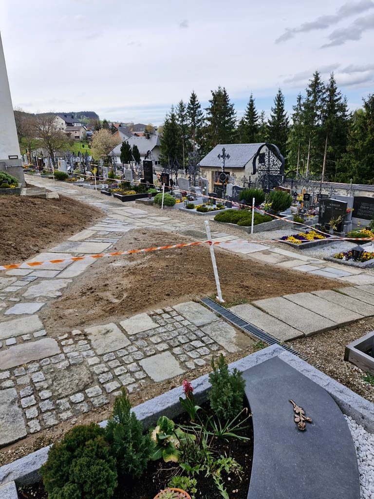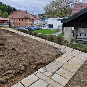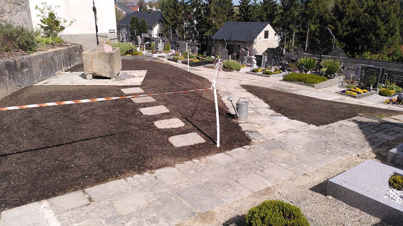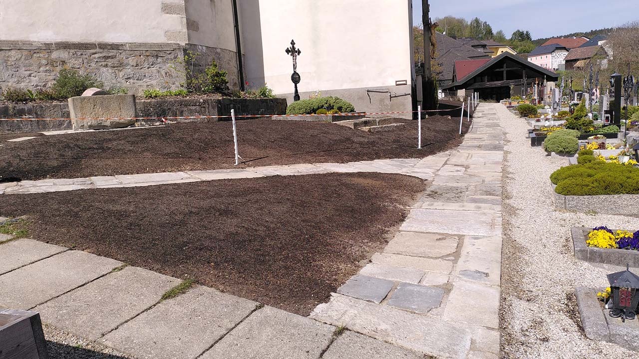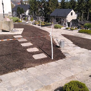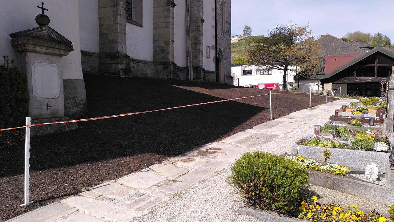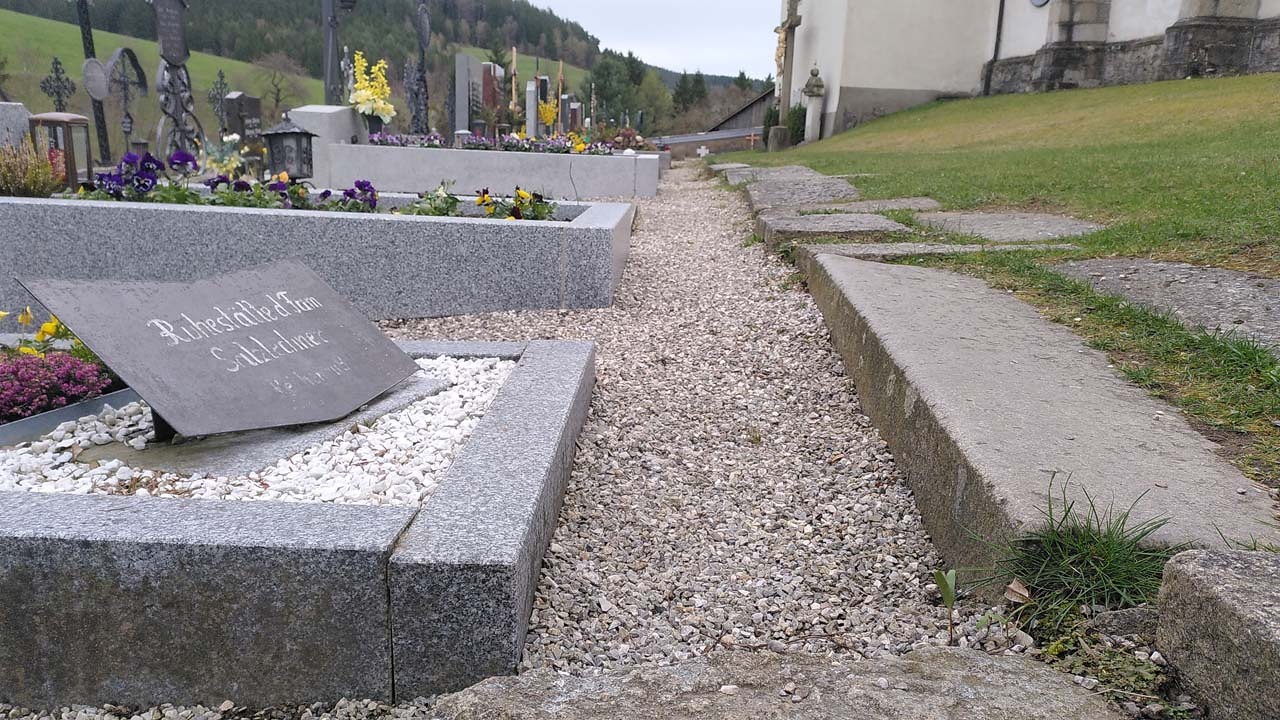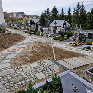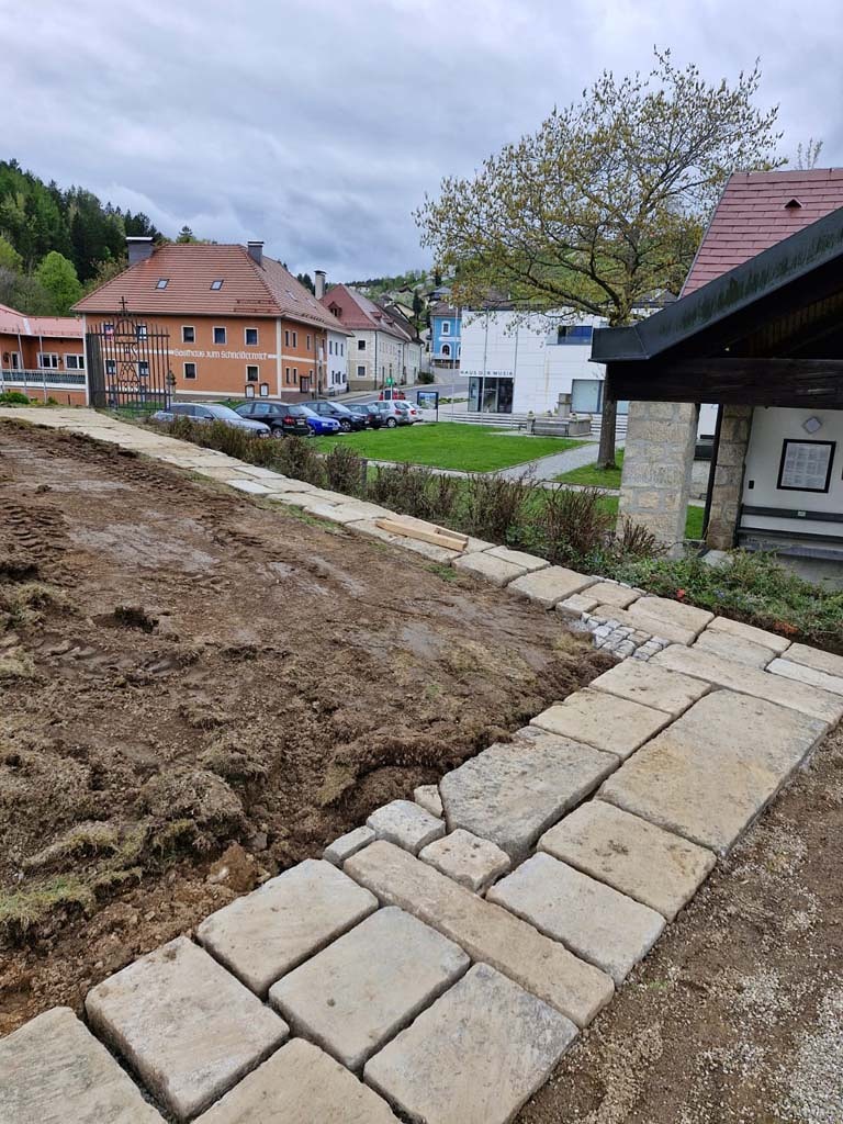 Der Steinplattenweg entlang der nördlichen Seite der Kirche ist fertig saniert.