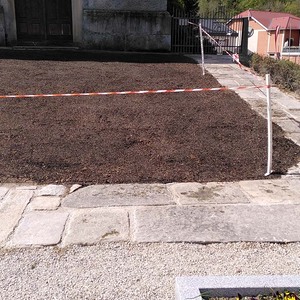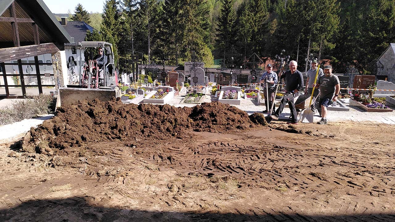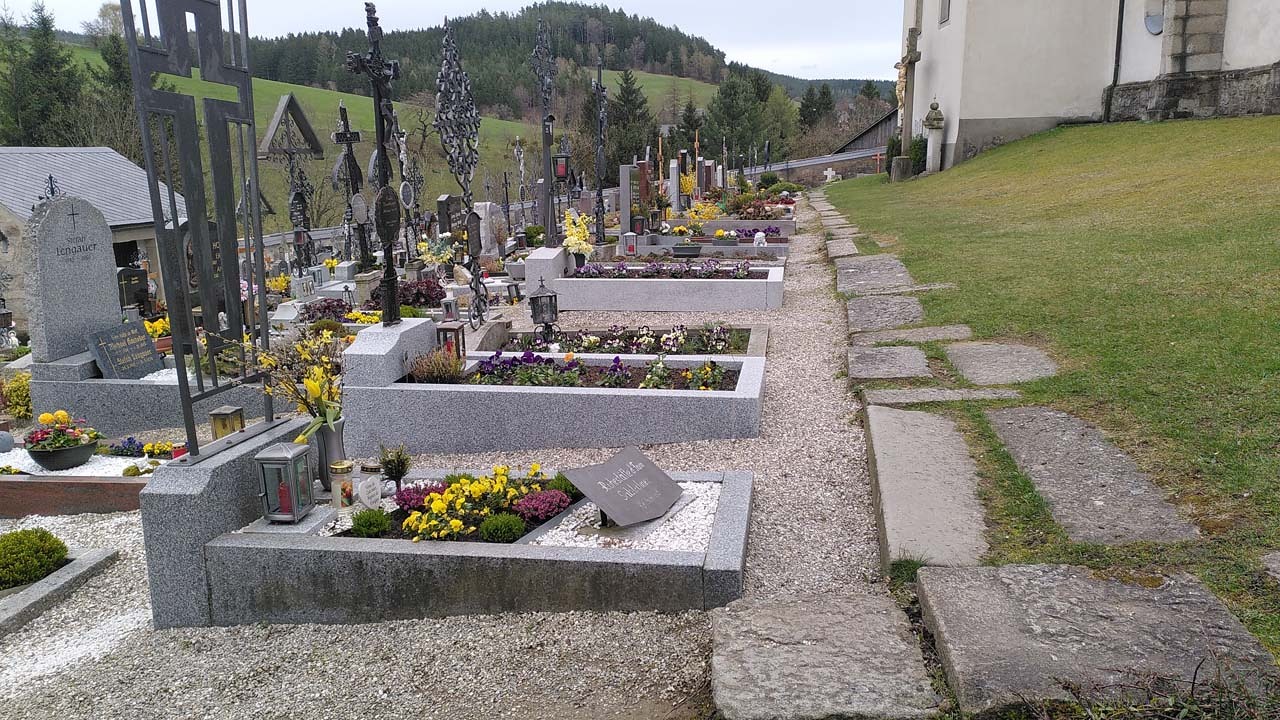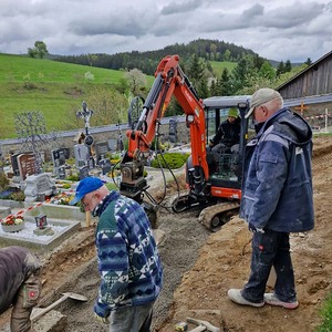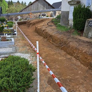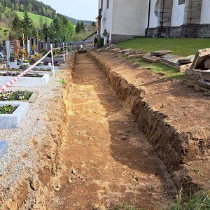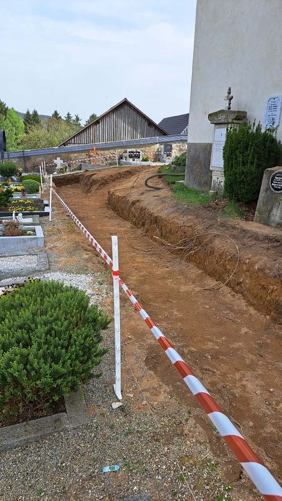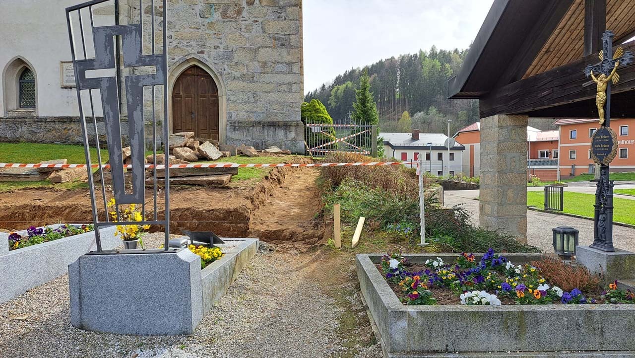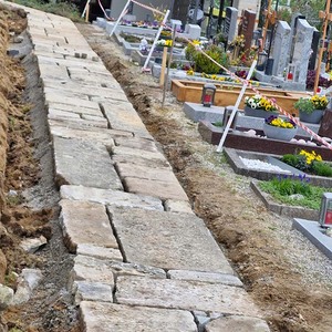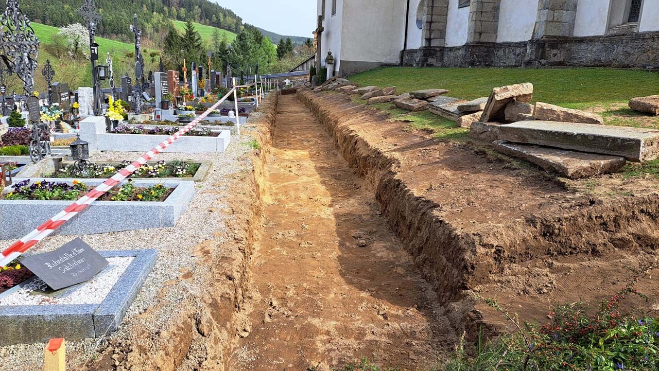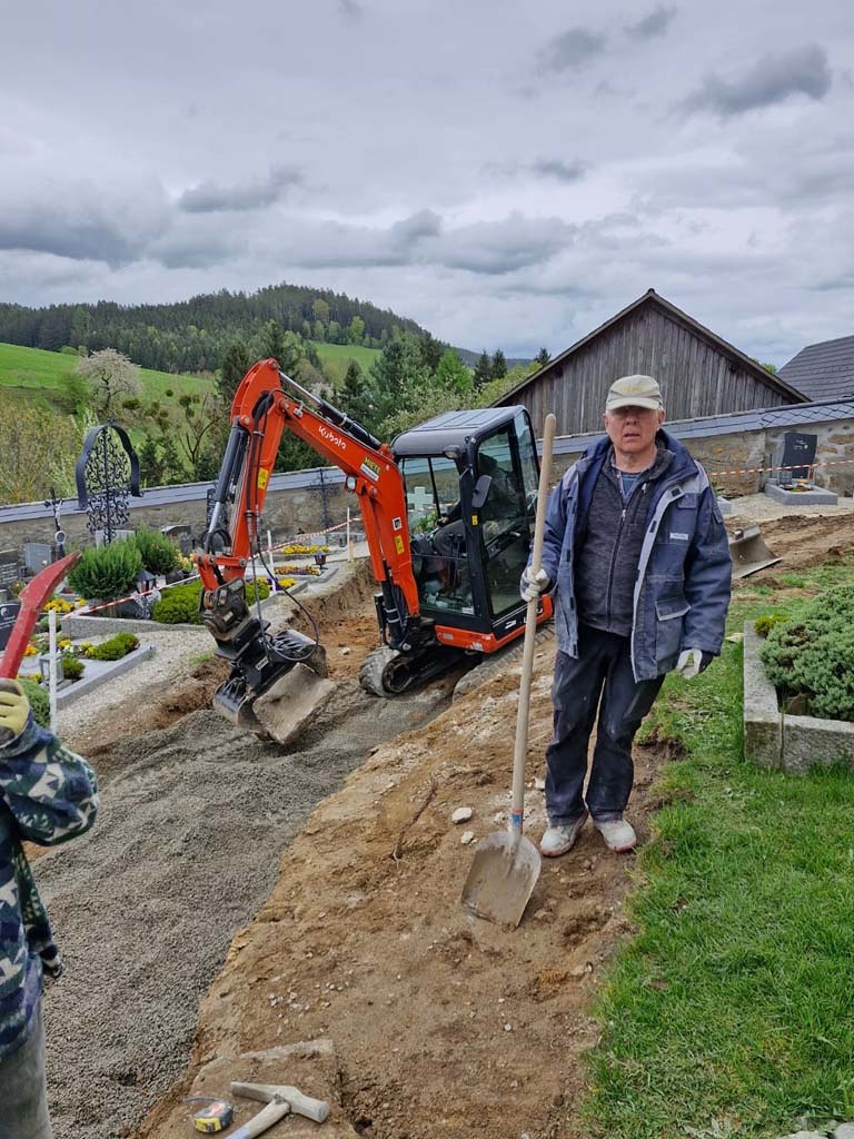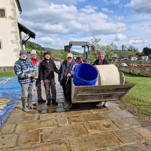 Der Steinplattenweg entlang der nördlichen Seite der Kirche ist fertig saniert.
