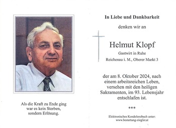Der Trauergottesdienst mit anschließender Beisetzung der Urne im Familiengrab findet am Donnerstag, 15. Feb um 10:00 Uhr in Reichenau statt. Im gemeinsamen Gebet gedenken wir seiner am Dienstag, 13. Feb um 19.30 Uhr in der Pfarrkirche.