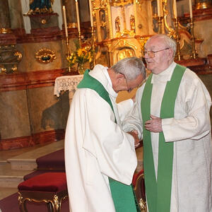 Nach vielen Jahrzehnten unermüdlichen Einsatzes zieht sich Monsignore, Konsistorialrat, Professor, Doktor, Oberstudienrat Josef Hager aus der aktiven Messgestaltung in Reichenau zurück.