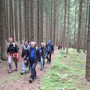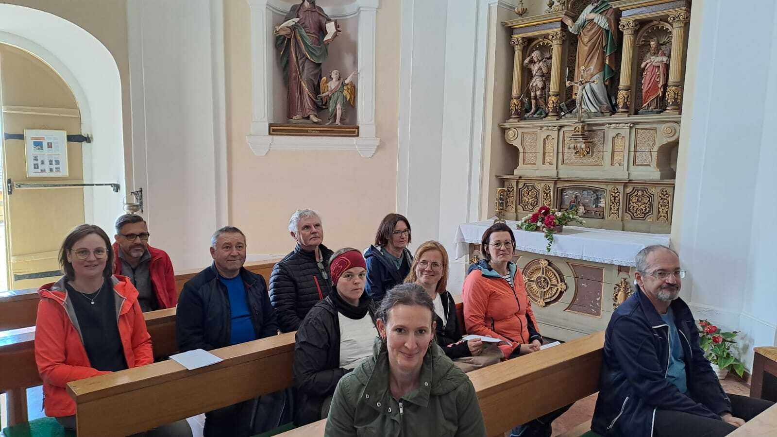 Nach der intensiven Denkarbeit am Vormittag führte der Weg die Gruppe zu Fuß nach Schenkenfelden, wo in der Kalvarienkapelle eine Andacht stattfand, die inspiriert von Abrams Weg war.