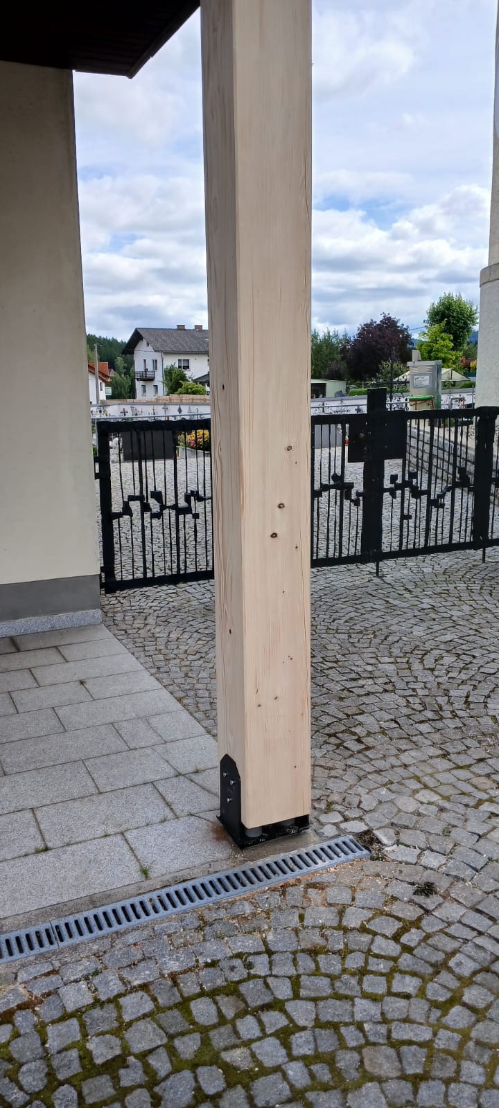 Durch die rasche und fachgerechte Reparatur ist die Tragfähigkeit der Säule wiederhergestellt und für weitere Jahre gewährleistet.