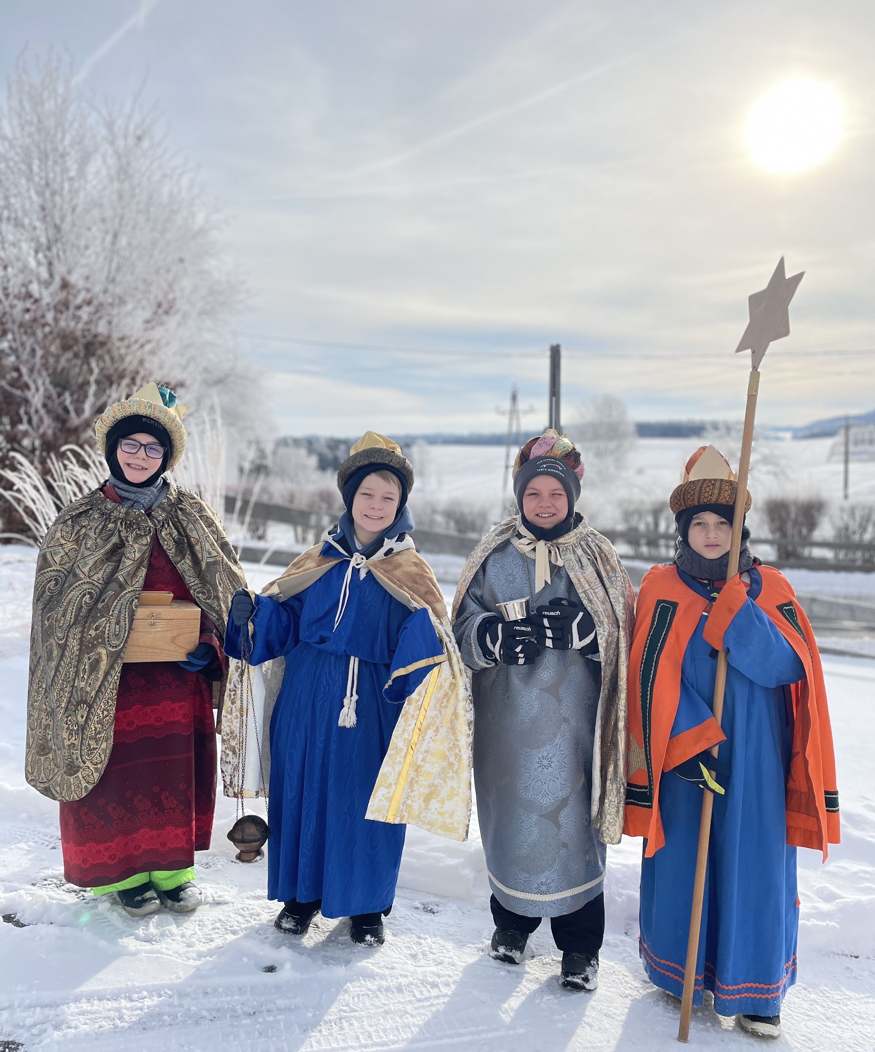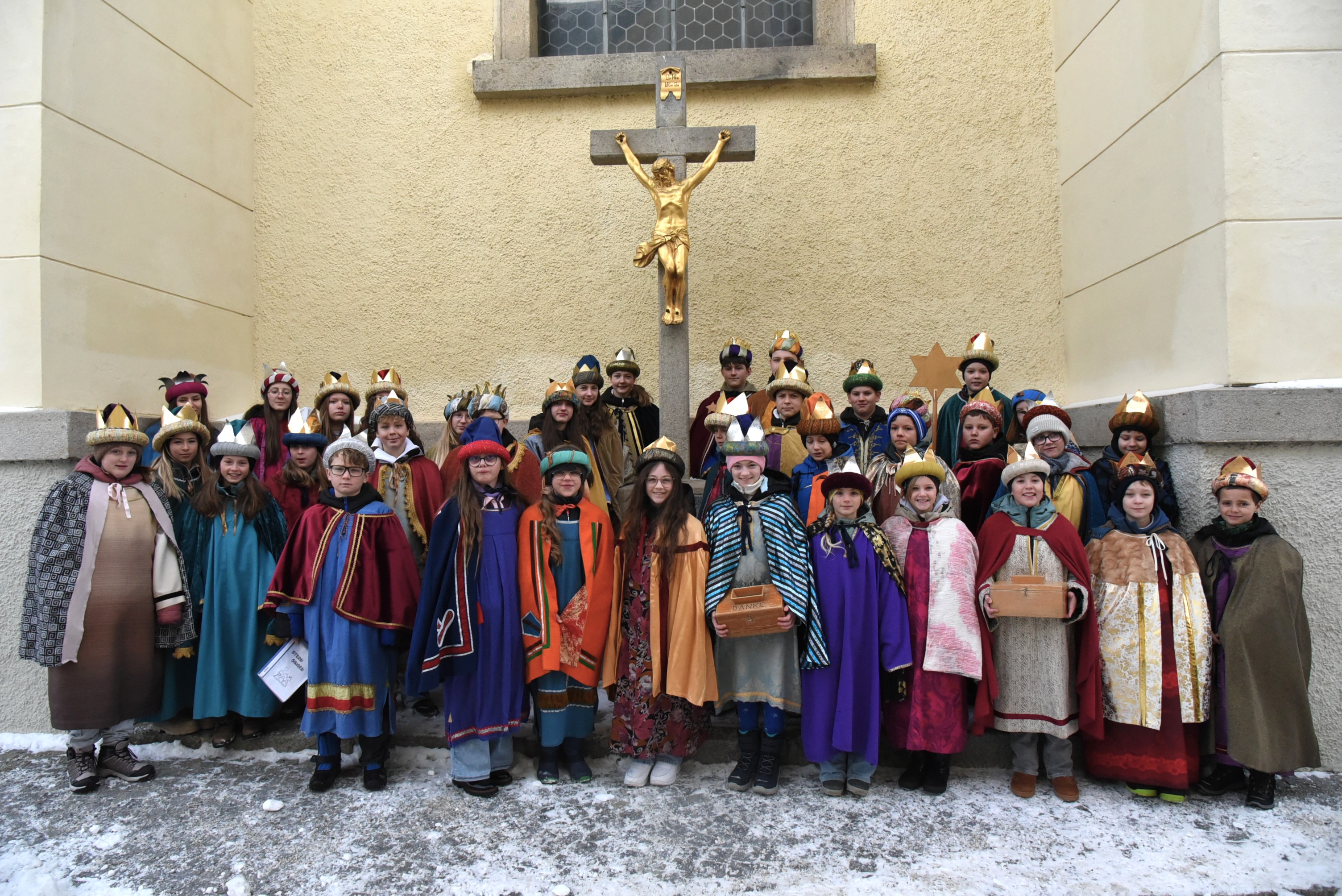 Unter dem Motto „Uns hindert kein Schnee und kein Eis und kein Wind“ waren die Heiligen 3 Könige dann bei teils winterlichen Bedingungen unterwegs. Ein großer Dank gilt den Eltern und Begleitpersonen, welche die Kinder mit viel Motivation, trockener Kleidung und stärkenden Mahlzeiten versorgt haben.