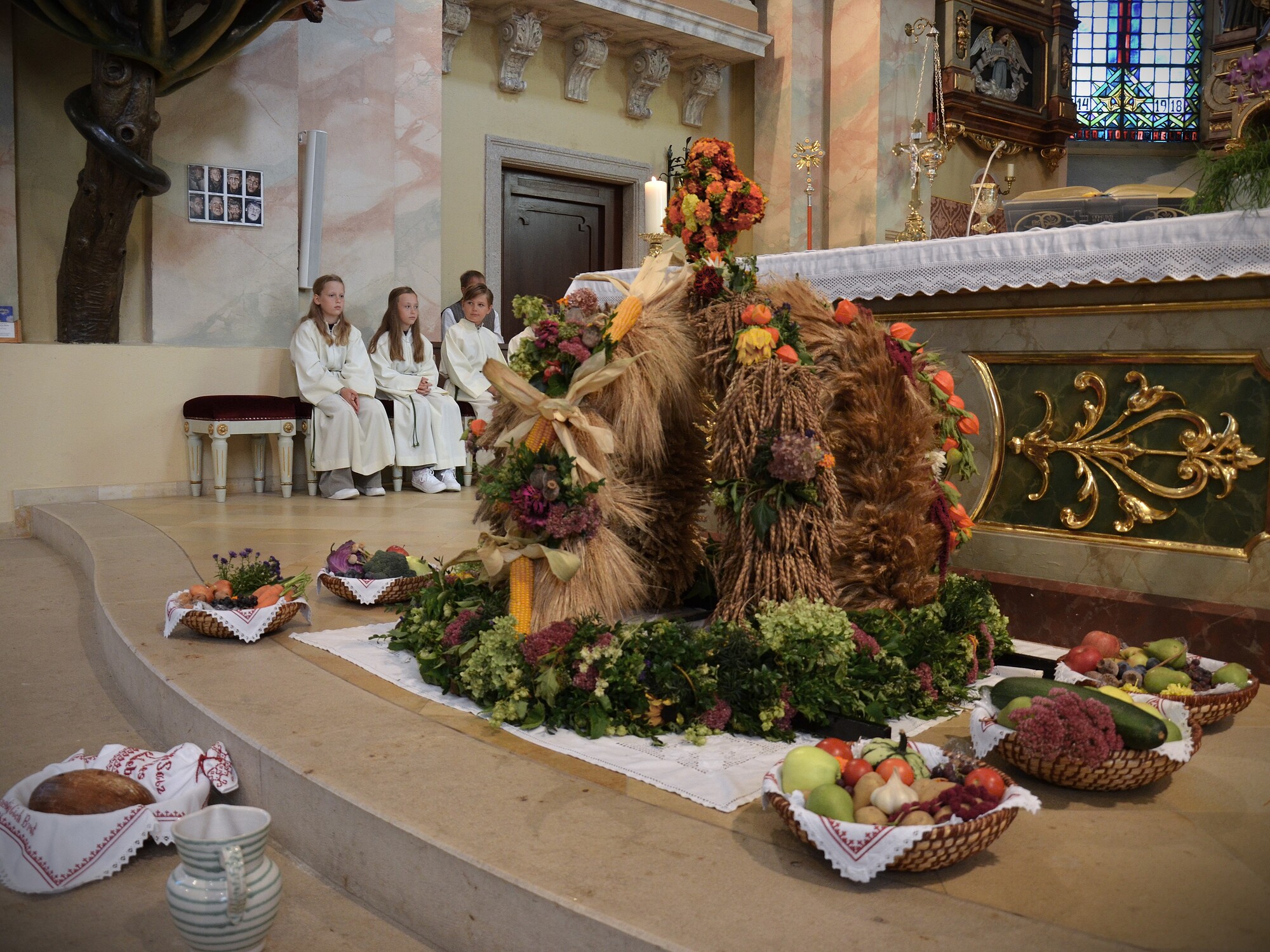 Am Sonntag den 21. September feierten wir mit Freude das Erntedankfest. Nach dem festlichen Einzug mit der prächtig geschmückten Erntekrone zog sich die Pfarrgemeinde zur feierlichen Messe zurück,