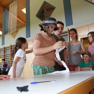 Nach einem Startgottesdienst mit Pastoralassistentin Patrizia Wohlmacher begannen die Spiele. Mit viel Wissen, Geschicklichkeit und Teamgeist wurden die 21 verschiedenen Stationen (u.a. Erbsen fangen, Schatzsuche, kirchliche Fragen, …) bestens bewältigt.