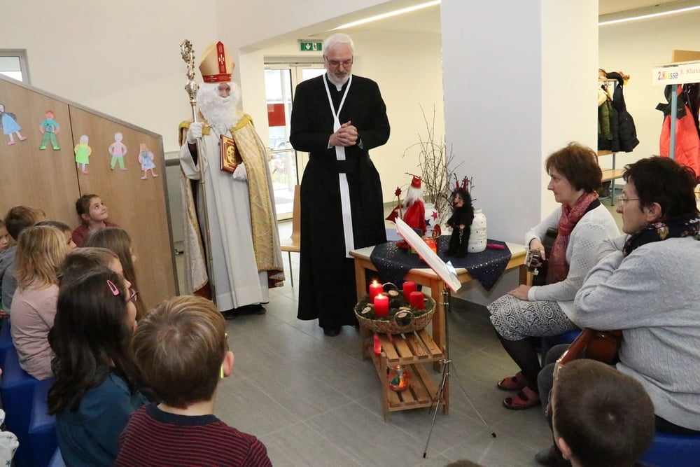 Hl. Nikolaus besucht die Volksschule am 06.12.2016