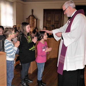 Volksschulkinder empfangen das Aschenkreuz - 02.03.2017