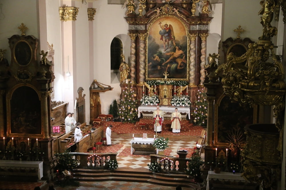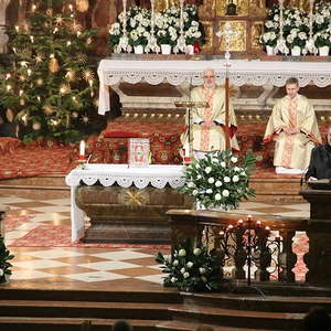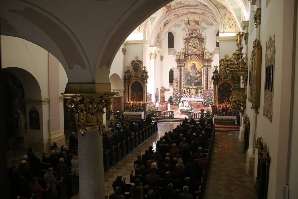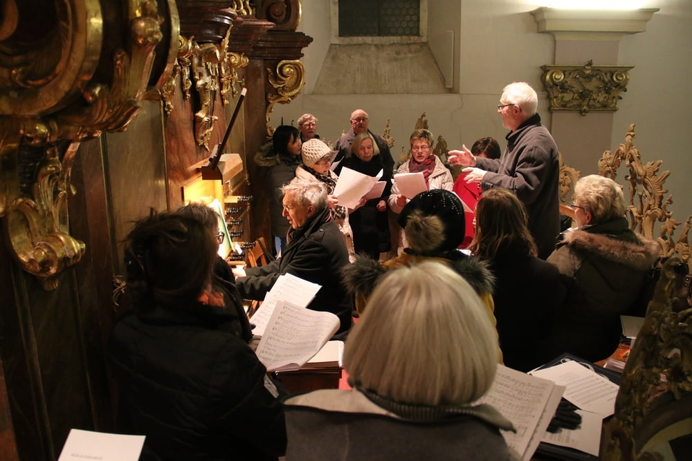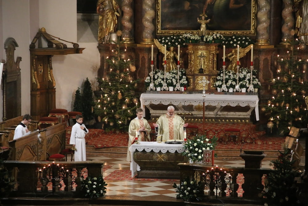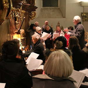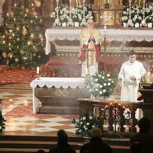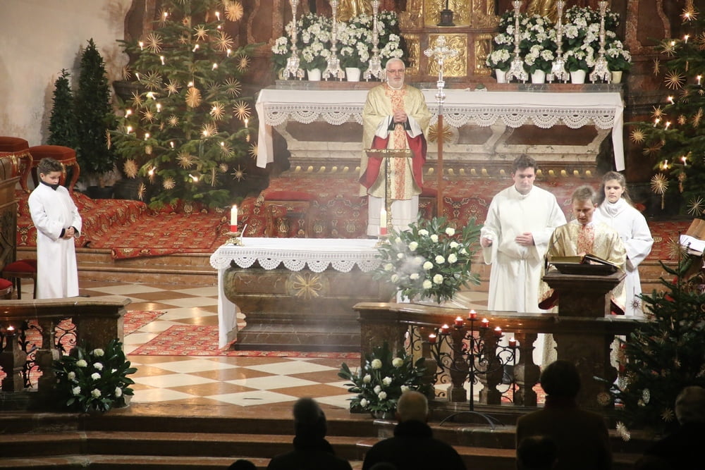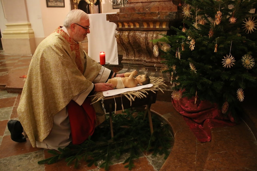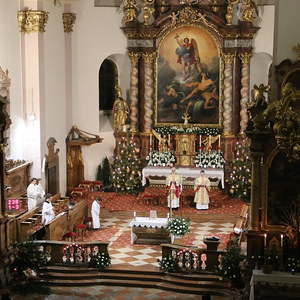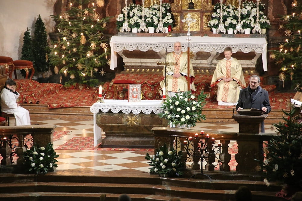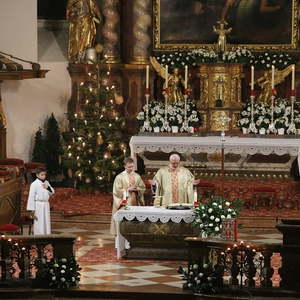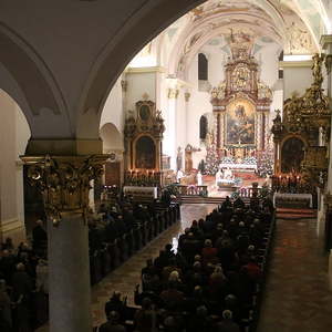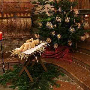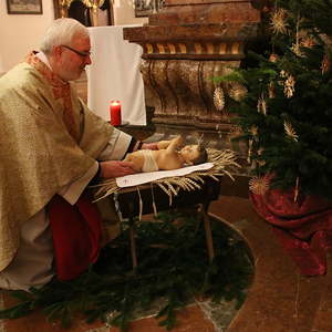 Nach dem das Jesuskind in die Krippe gelegt wurde, feierte ein große Festgemeinde zusammen mit dem Kirchenchor die Liturgie der heiligen Nacht - die Christmette.