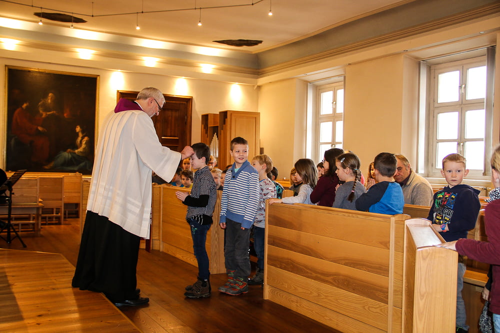 Andacht der VS-Kinder zu Beginn der Fastenzeit mit Aschenkreuz am 14.02.2018