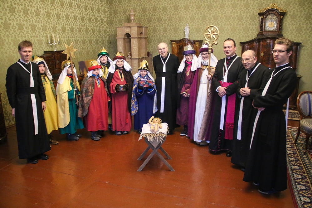 Unsere Sternsinger besuchten gleich am Morgen die Chorherren im Stift. Die Wanderung der beiden Sternsinger-Gruppen durch die Pfarre Reichersberg beschäftigt die jungen Teilnehmer in ihrer Ferienzeit für zwei Tage. Sie bitten um ein offenes Herz für Sozialprojekte und Kinder in aller Welt.