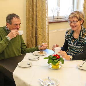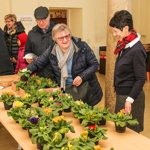 Vor dem Gottesdienst gab es Kaffee und Kuchen im Pfarrheim. Auch der Blumengruß durfte an diesem Tag nicht fehlen.