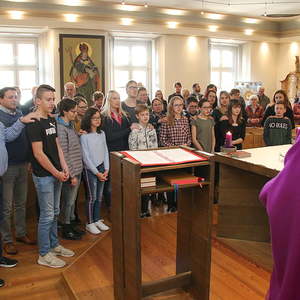 Mit der Gestaltung des Pfarrgottesdienstes stellten sich die sieben Firmlinge des Jahres unserer Pfarrgemeinde vor. Eltern und Paten wurden aufgerufen ihr Versprechen bei der Taufe durch ihr Dahinterstehen und Auflegen der Hand auf die Schulter des Jugendlichen während des Glaubensbekenntnisses zu unterstützen.
