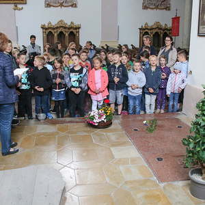Als letzten Gruß sangen die Volksschulkinder ein Lied und stellten eine Blumenschüssel zur Gruft.