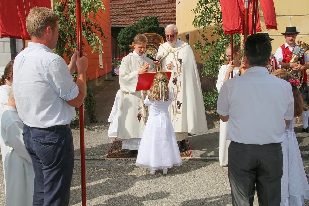 Danke den Erstkommunionkindern, der Feuerwehr, der Goldhaubengruppe, der Musik, den Ministranten und allen, die zum Fest beigetragen haben.
