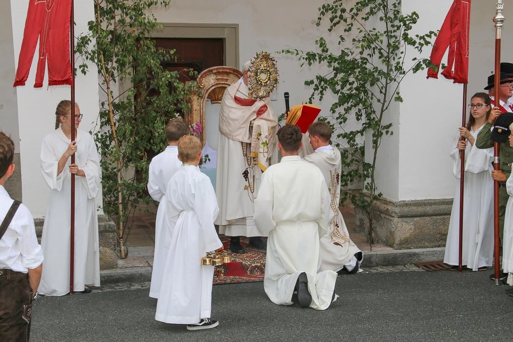 Fronleichnam - der Leib des Herrn, das Brot des Lebens mitten im Alltag unsres Lebens, oft unscheinbar verborgen und doch wissen wir uns getragen von ihm, der mit uns durch die Straßen unsres Lebens zieht.