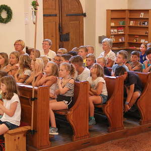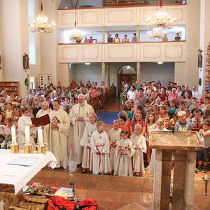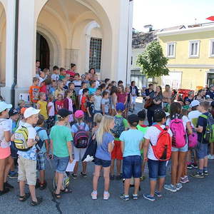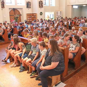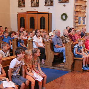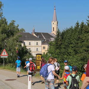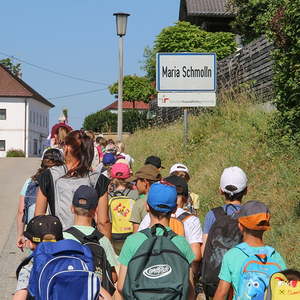 Erstmals fand diese Kinderwallfahrt bezirksübergreifend statt. Die Kinder der Volksschule Maria Schmolln (Bezirk Braunau) begrüßten die Schulkinder, ihre Lehrkräfte, Direktoren und Begleitpersonen aus dem Bezirk Ried im Innkreis. Diese wanderten sternförmig zur Kirche. Die Volksschulen Reichersberg, Kirchdorf - Mühlheim, Weilbach - St. Georgen - Mörschwang und die VS Maria Schmolln nahm vor dem Kirchenportal Aufstellung, bevor die gemeinsame Hl. Messe gefeiert wurde. Alle Pilger wurden von wartenden Eltern, Großeltern, ... willkommen geheißen.