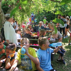 Bei der gemeinsamen Agape im Klostergarten aßen alle gesegnetes Brot und ließen den wunderschönen Tag ausklingen.