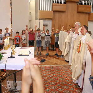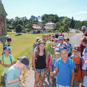 Die Schülerinnen und Schüler machten sich bereits im Religionsunterricht Gedanken über das vergangene Schuljahr und wofür man "Danke" sagen kann. Selbstgebastelte Bilder der Schutzmantelmadonna mit Dankessätzen wurden Maria in der Kirche zu Füßen gelegt.
