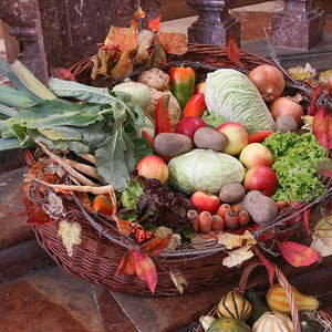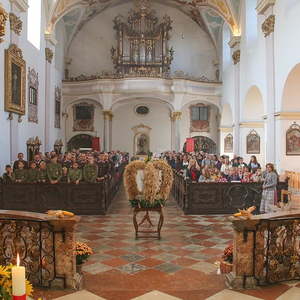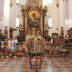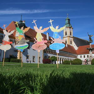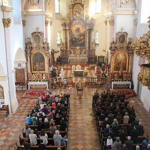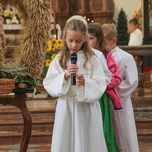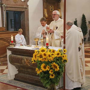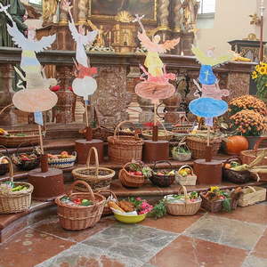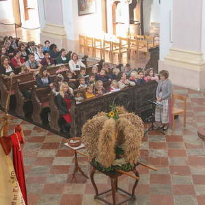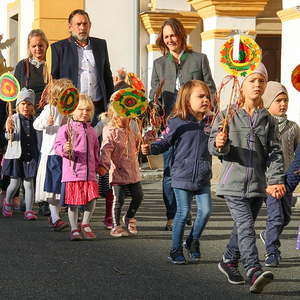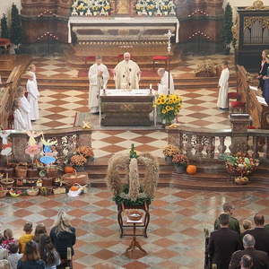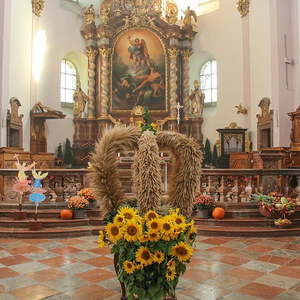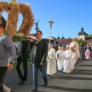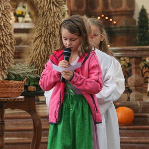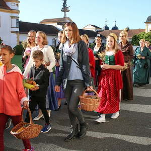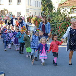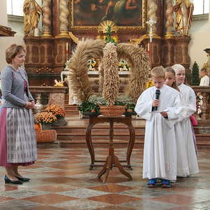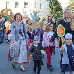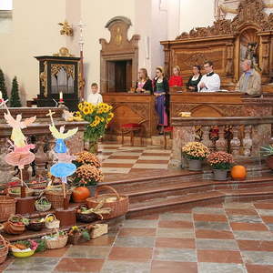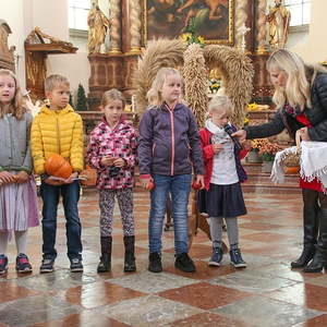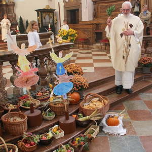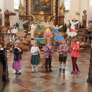 In der Stiftskirche eröffneten die Kinder der Volksschule mit dem Lied "Keinen Schritt geh´ich allein" die Hl. Messe. Selbstgestaltete Michaelsfiguren und Erntekörbchen wurden in die Kirche mitgebracht.