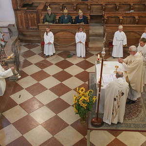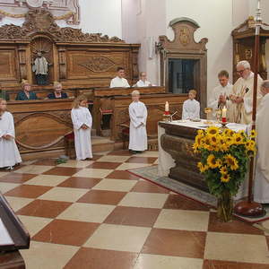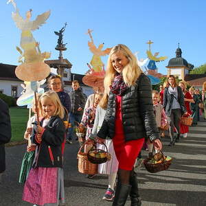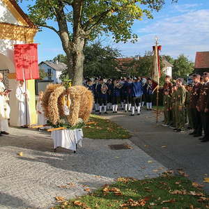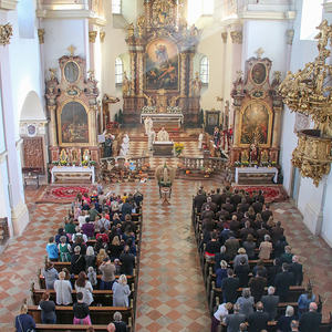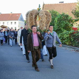 Der feierliche Festzug wurde vom MV Antiesenhofen-Reichersberg angeführt und es schlossen sich der Kindergarten, die Volksschule, die freiwillige Feuerwehr, die Goldhaubengruppe, die Ministranten, der Klerus und die Pfarrbevölkerung an.