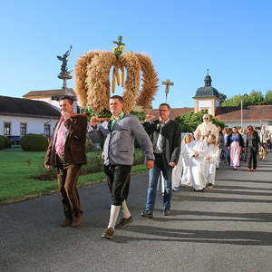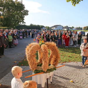 Als Dank, nach dem feierlichen Gottesdienst, wurden von der Goldhaubengruppe Erntebüscherl verteilt.