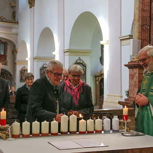 Die anwesenden Jubelpaare entzündeten nach der Segnung ihre persönliche Kerze am Altar.
