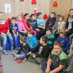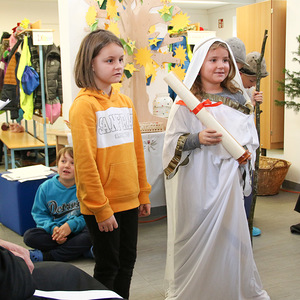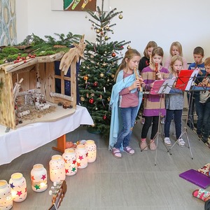 In der sehr festlich geschmückten Aula trugen die Kinder Lieder, ein Krippenspiel, und ein weihnachtliches Finger- und Bewegungsspiel vor. Auch das Flötenspiel bereicherte das Fest.