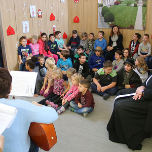 Am Ende der feierlichen Andacht segnete Hr. Dechant Klemens Pillhofer in der Religionsstunde gebastelte Zündholzschachtelkripperl, welche anschließend von der Religionslehrerin Cornelia Binder an die Kinder verteilt wurden.