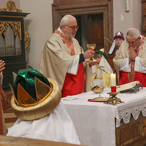 Das Hochamt feierte mit der Pfarrgemeinde Stiftsdechant H. Klemens und wurde von den SternsingerInnen mitgestaltet.